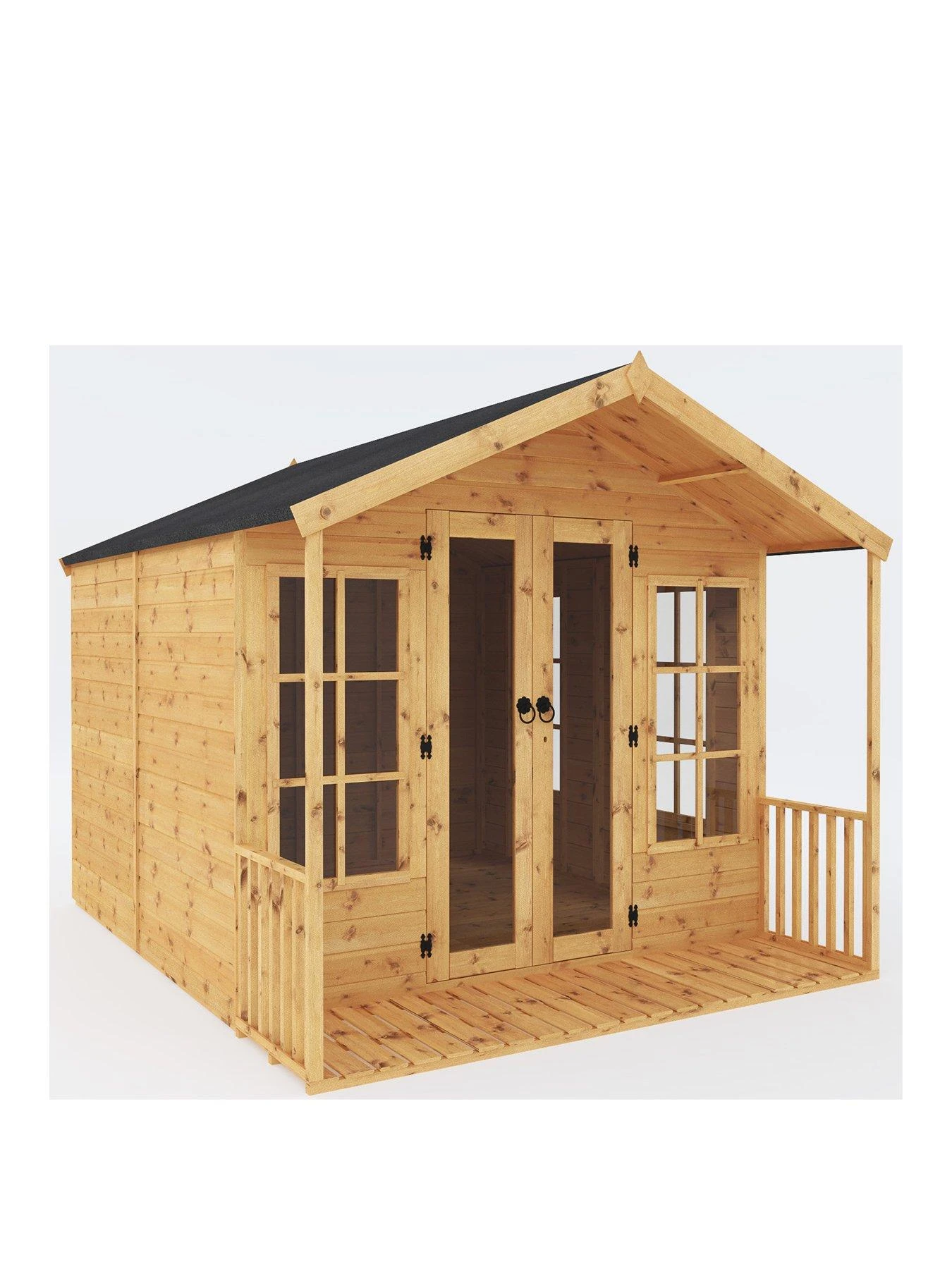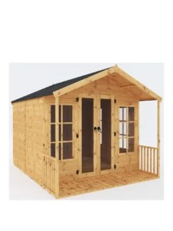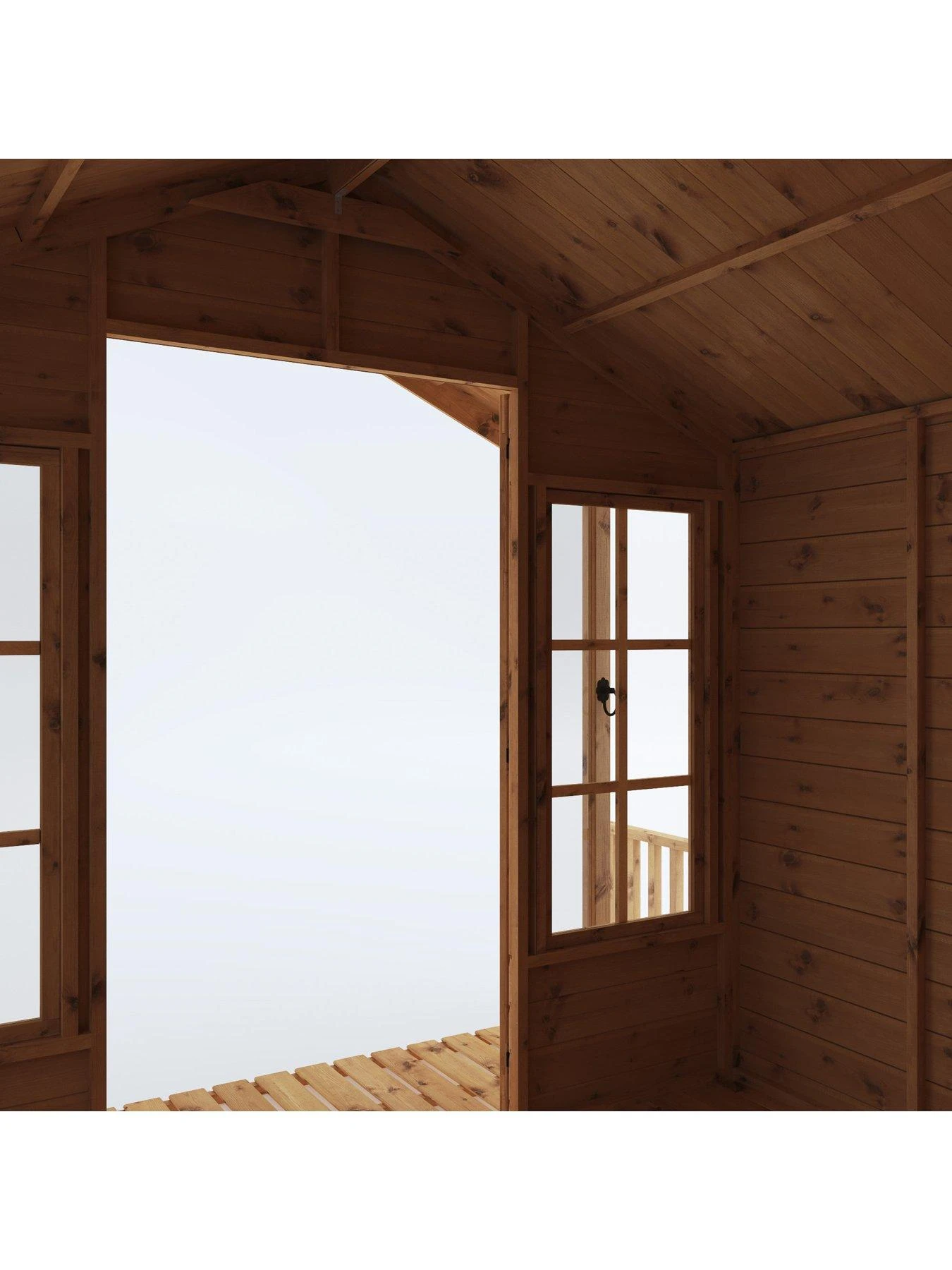 The Mercia 10 x 8ft Traditional Summerhouse is a spacious and stylish summerhouse that offers the perfect place for entertaining guests or as somewhere to sit back, relax and enjoy the views of the garden. Four large styrene glazed windows allow light to flood the interior and styrene glazed French doors open out onto the sheltered veranda, creating a light, airy and welcoming space to enjoy.