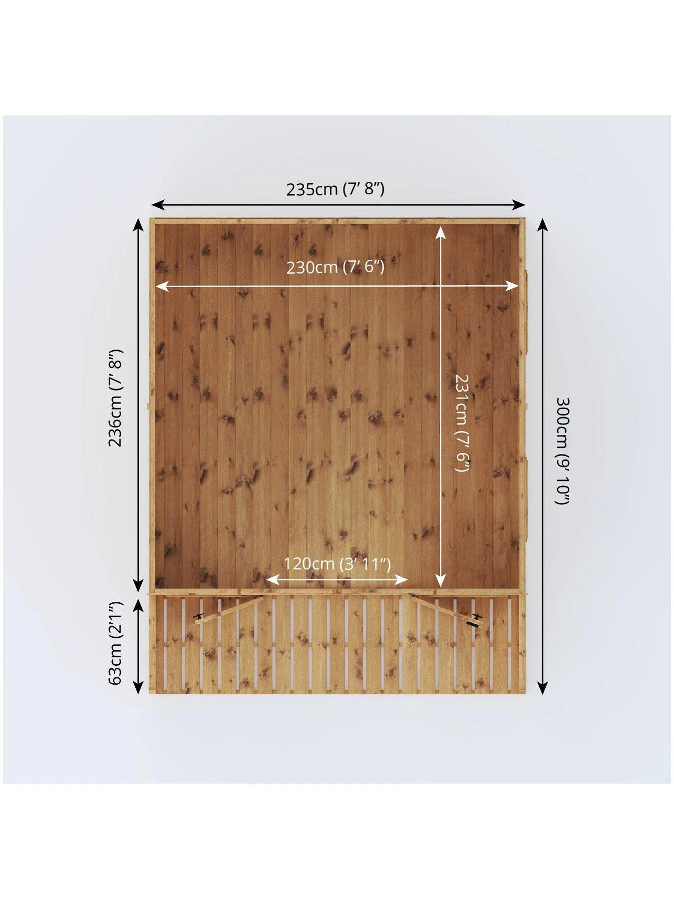 This building is made in the UK using ethically sourced FSC-certified timber. To ensure your summerhouse looks great and lasts the test of time, it comes with a conditional 10-year Anti-rot guarantee, as well as a 12-month manufacturer’s warranty. Annual re-treatment is required to maintain your building and the Anti-rot guarantee.