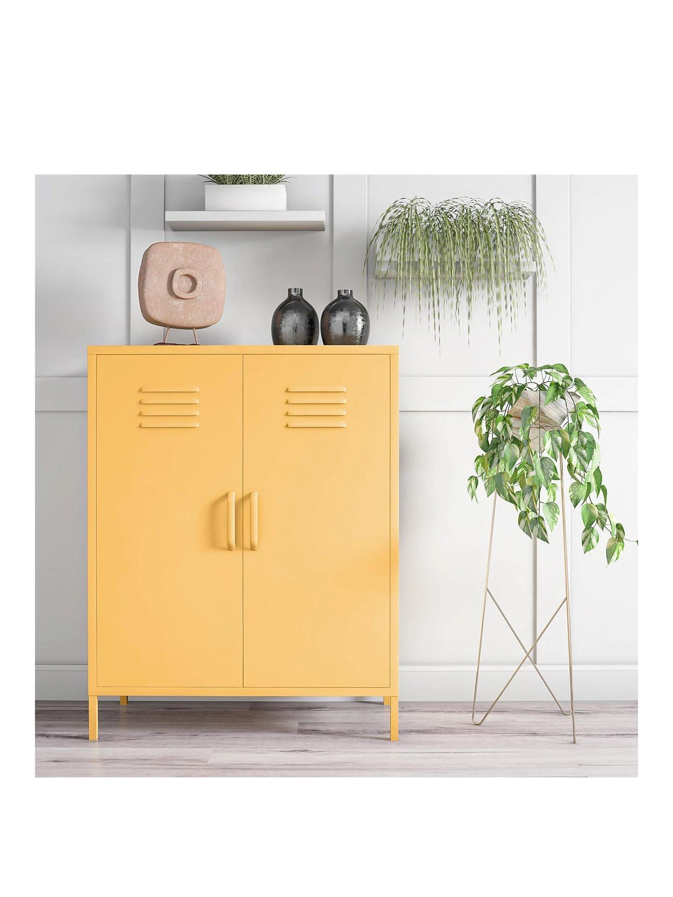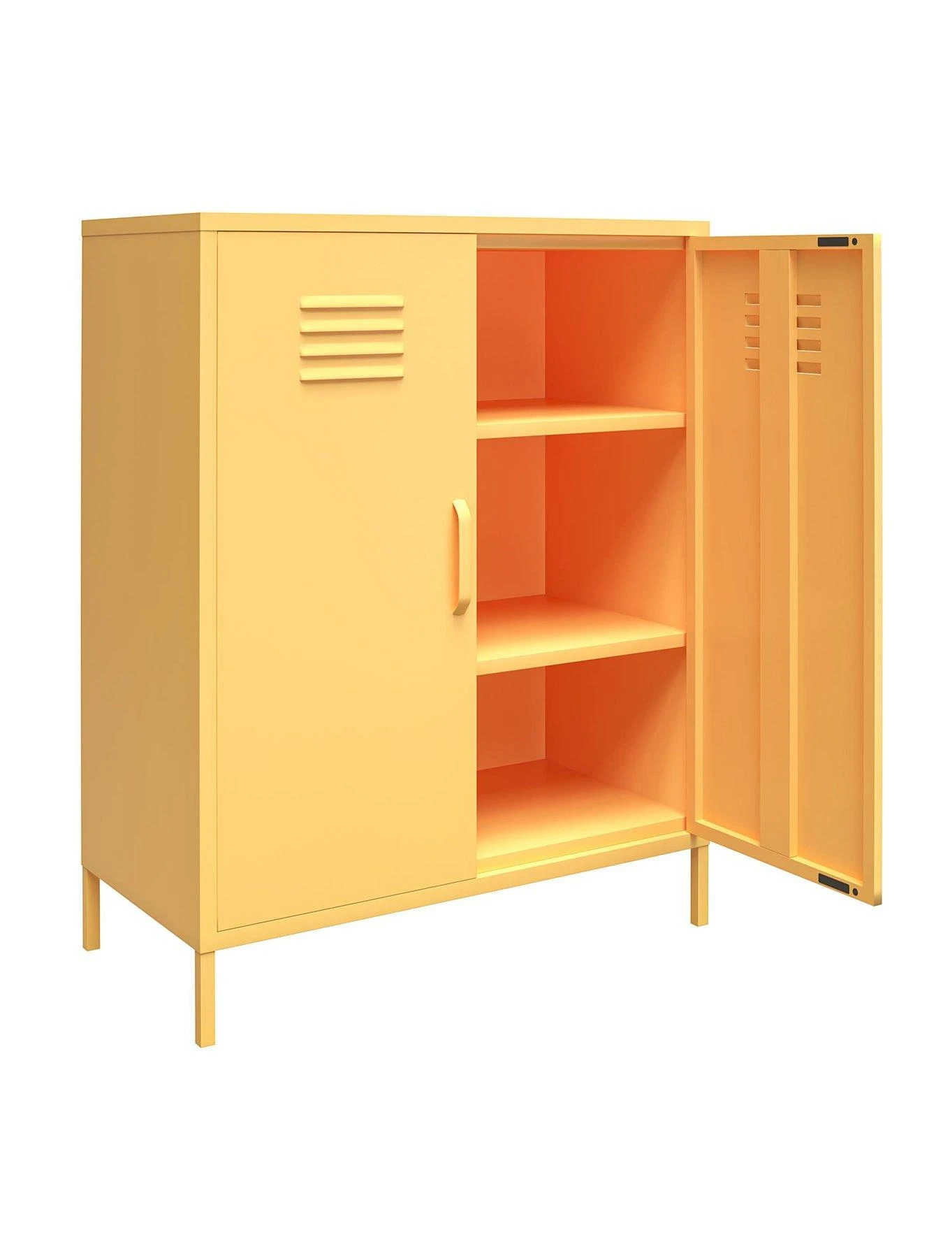 Add valuable storage and a fun pop of color anywhere in your home with the Novogratz Cache 2 Door Metal Locker Storage Cabinet. Made of powder-coated metal, the bright color adds a fun twist to your storage solution.