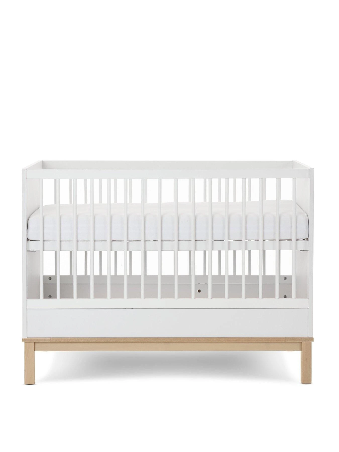 Suitable from birth until approx. 4 years old, the 3-position base height ensures there is a setting for each of your child’s milestones. When it is time to transition to a ‘big bed’ the included safety rail will provide the reassurance and familiarity they need. The Astrid mini cot bed requires an Obaby 120 x 60cm mattress, available separately via code NKW4W.