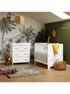 The Obaby Nika range offers a contemporary design, due to its clean lines and textured oak effect finish, that will fit perfectly in today’s modern nursery. This 2 piece room set consists of Nika Mini cot bed and changing unit.