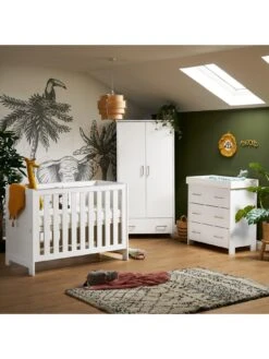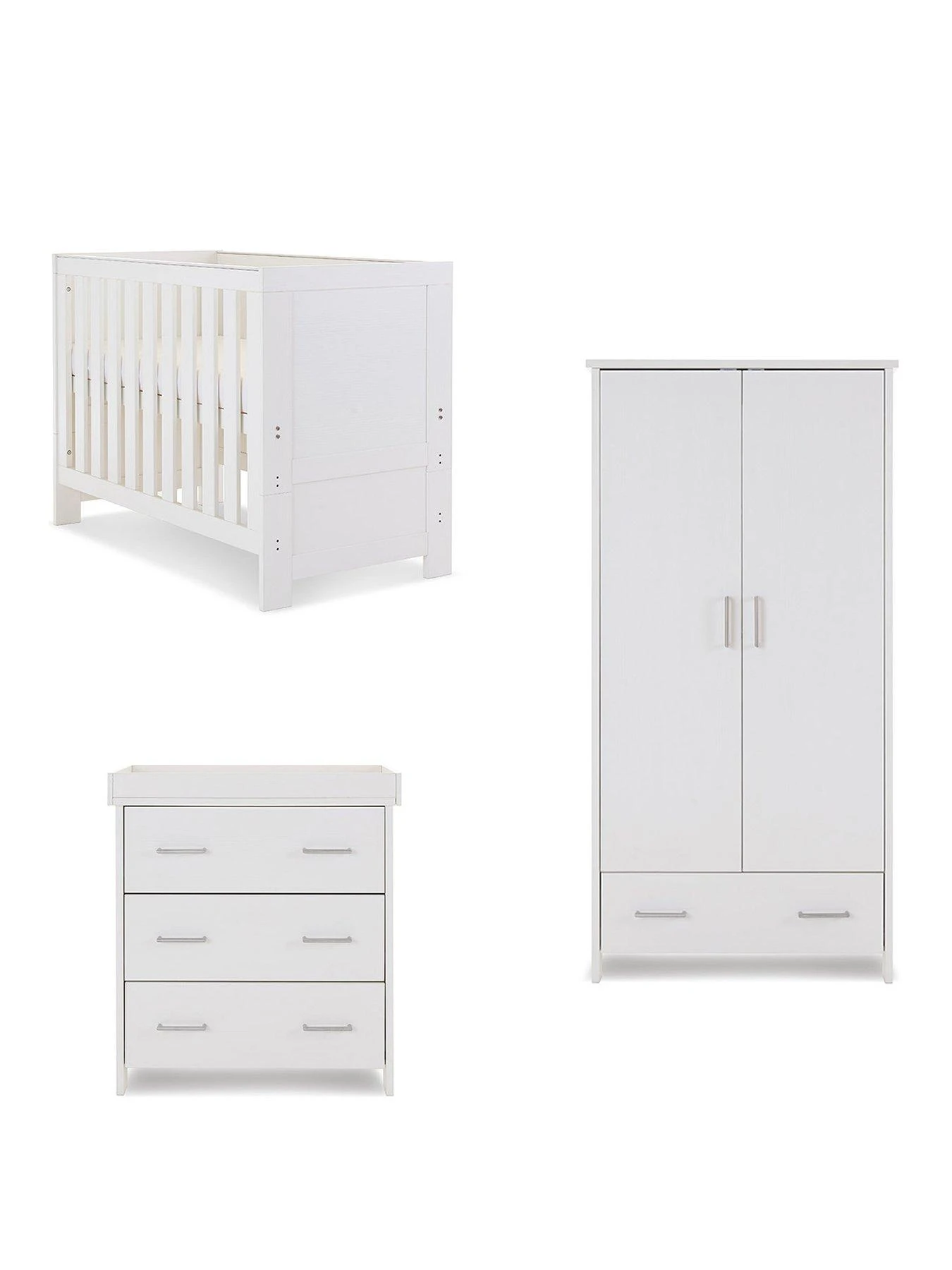 The beautiful Obaby Nika Mini 3-Piece Nursery Set includes a cot bed, changing unit and double wardrobe.