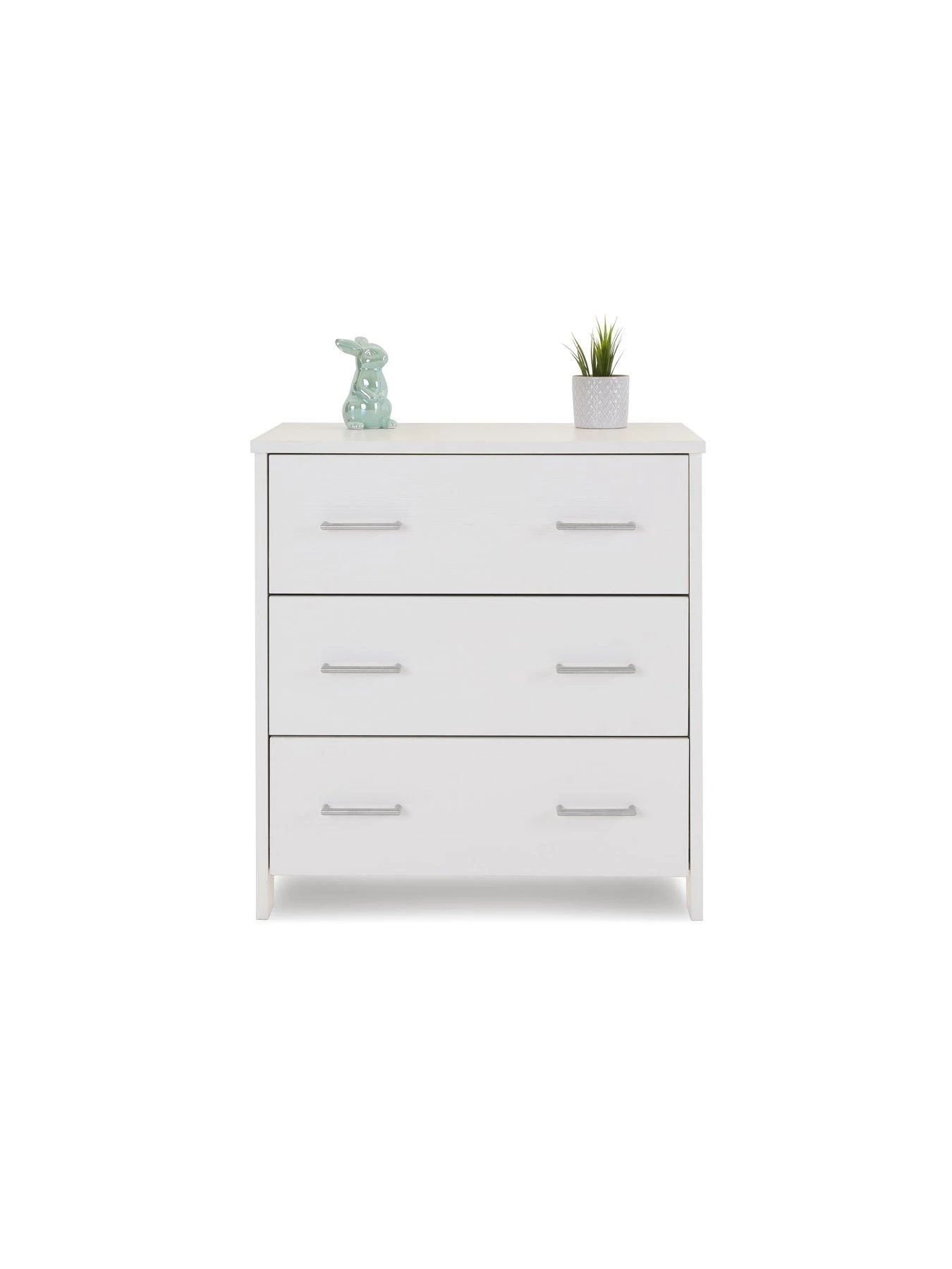 The Nika changing unit has 3 large, 32-litre capacity, full-depth drawers offering plenty of space for changing essentials, toys, clothes and more. Each drawer features 2 brushed metal handles and glides on smooth runners, allowing you to easily open them with either hand. The changing unit also fits a changing mat up to 76 x 46cm at the top, providing a comfortable height for parents. When the changing area is no longer needed, the frame can be easily removed to create a solid top chest of drawers.