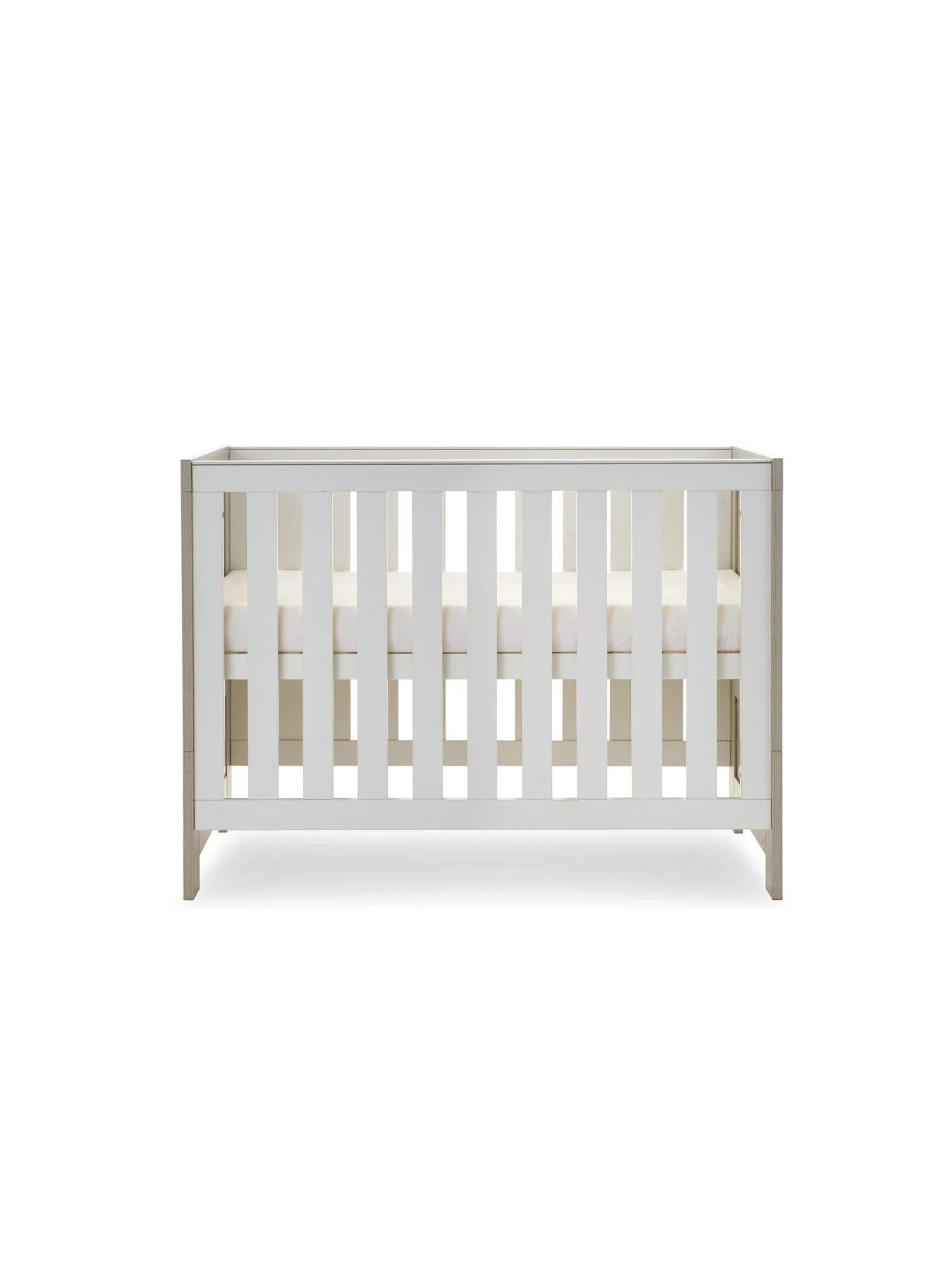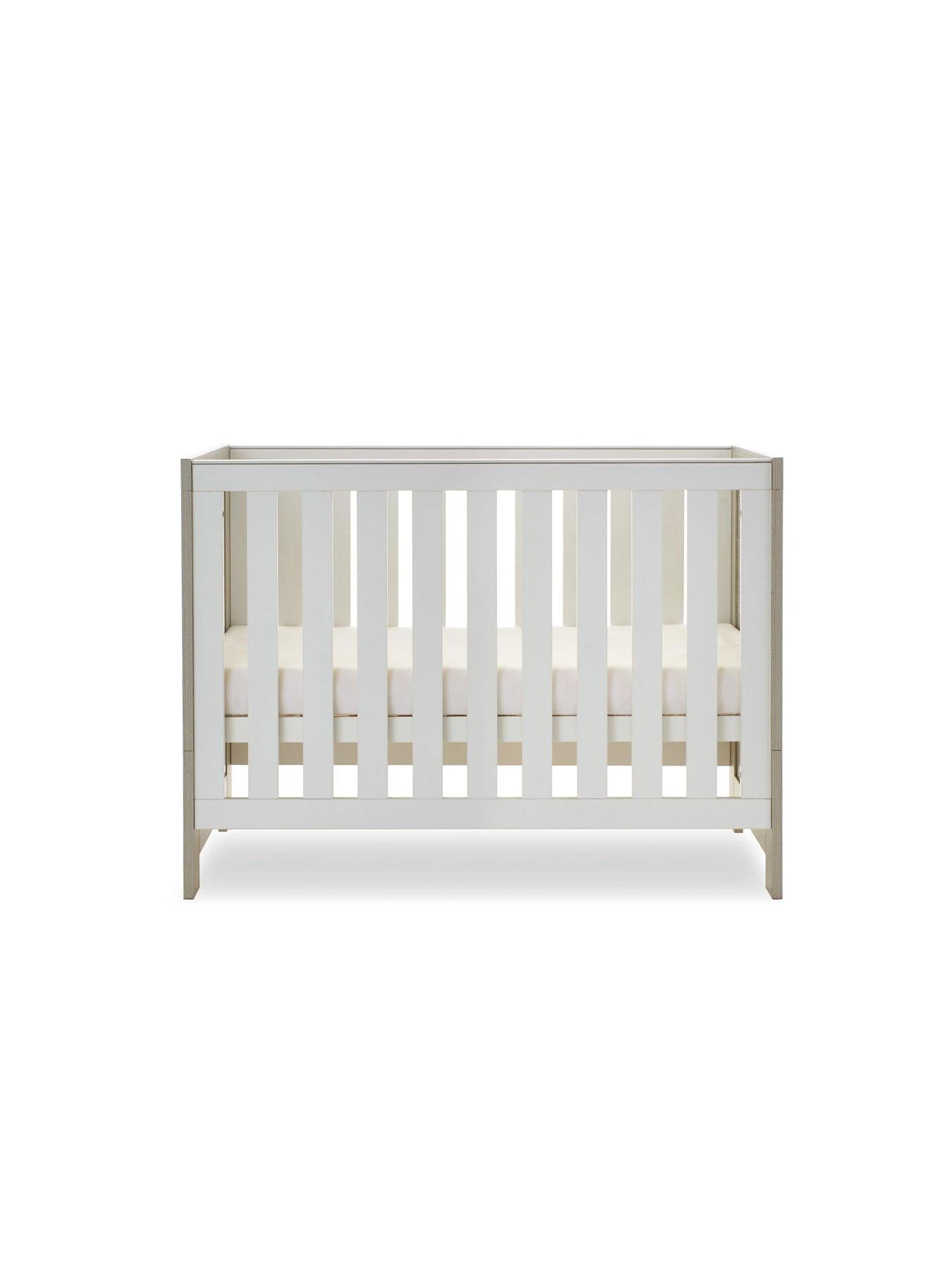 For the smaller nursery, Obaby have created the Nika Mini cot bed. More compact than the full-sized Nika cot bed without compromising on features, the Nika Mini has 3Ā mattress base positions, the highest allowing you to put down and pick up your newborn without straining your back through unnecessary bending. As your little one starts to develop and become more active, the mattress base can then be lowered by a further two positions, keeping them safe and secure at all times. Teething rails alsoĀ protect their gums andĀ delicate first teeth.Ā When your little one is standing confidently, the Nika can be easily transformed into a stylish toddler bed that still offers the familiarity they are used to.Ā The Nika Mini requires an Obaby 120 x 60cm mattress, available separately.