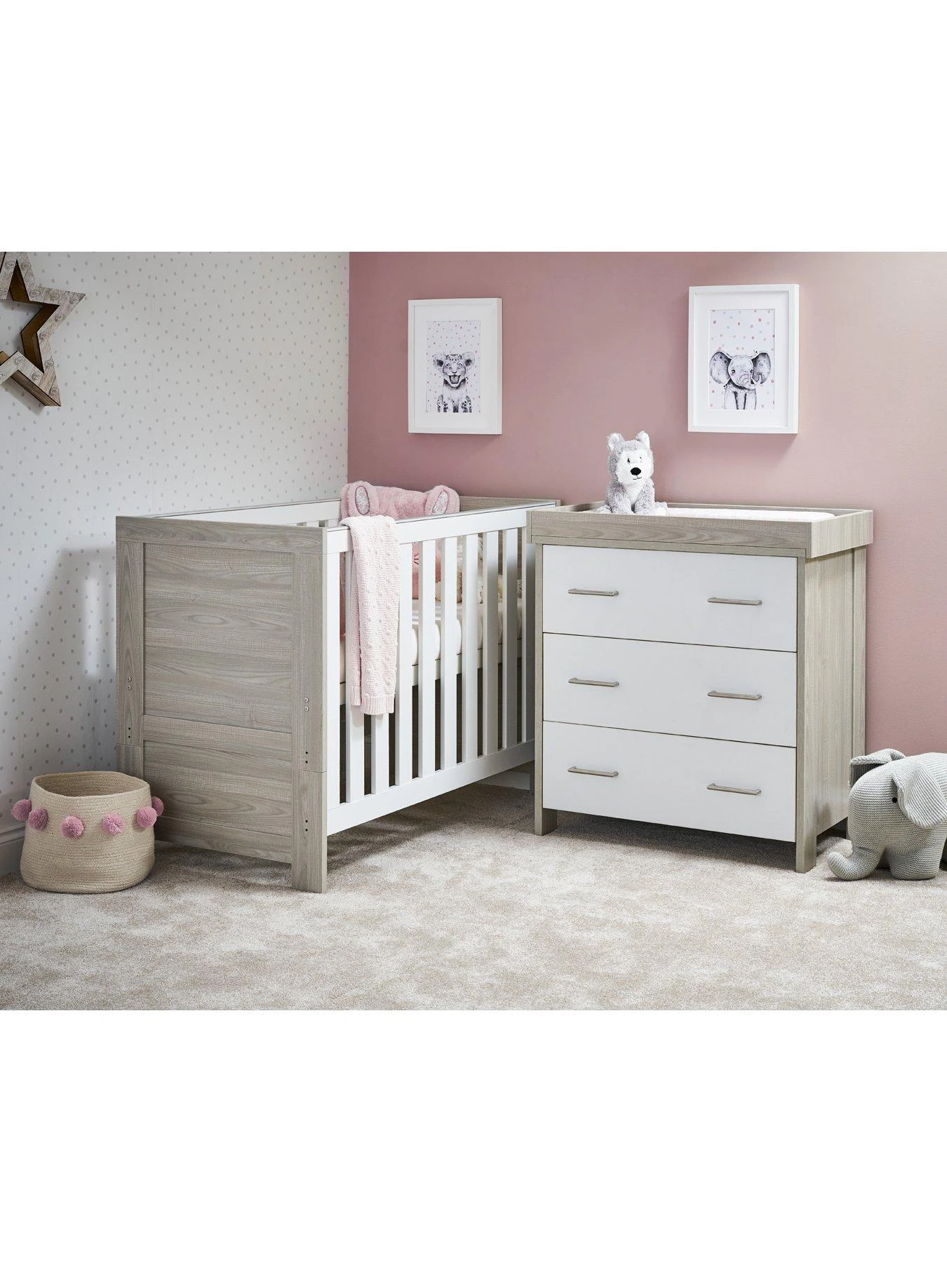 The beautiful Obaby Nika Mini Cot Bed & Changing unit are ideal for a smaller nursery.