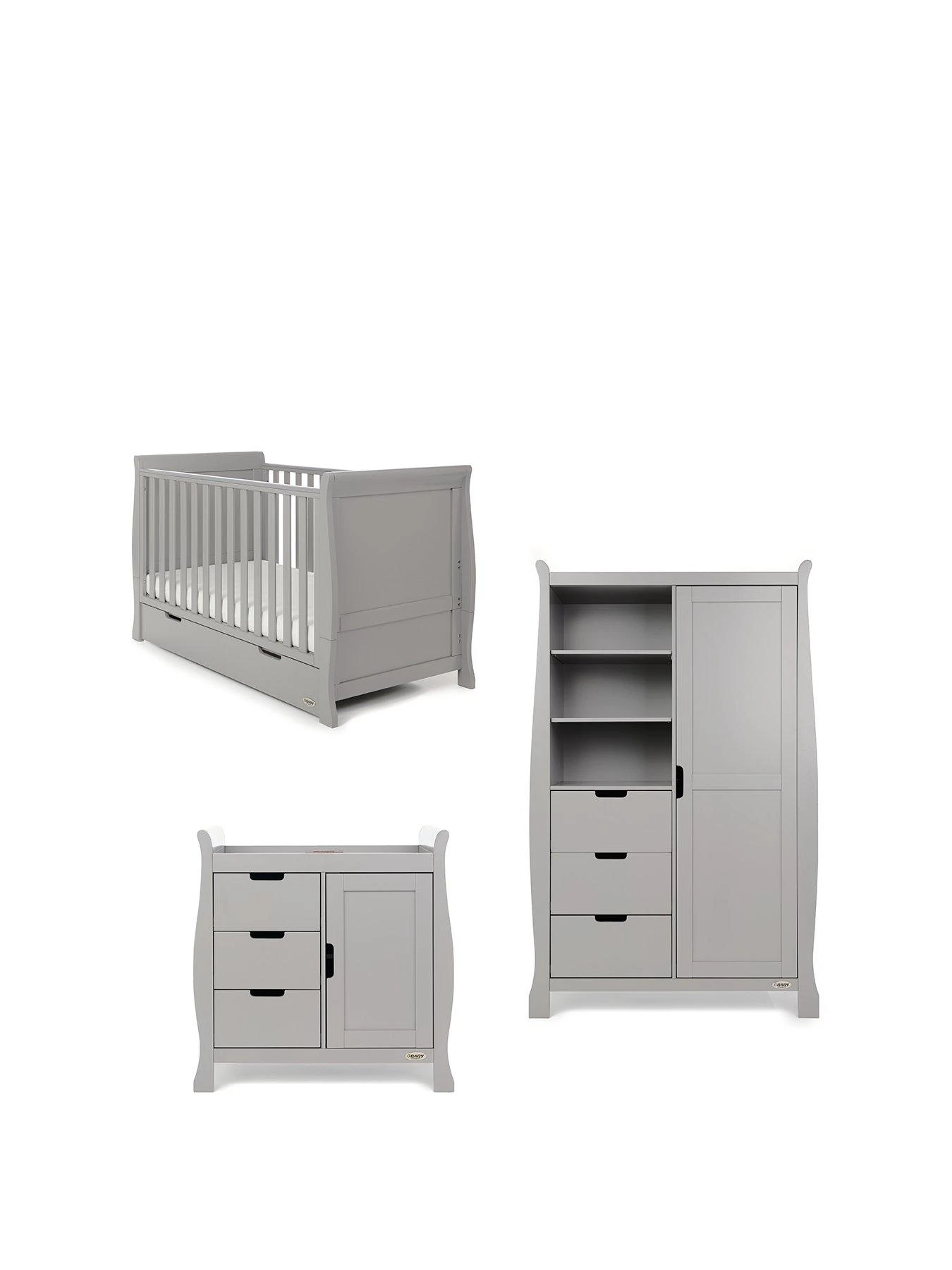 Obaby Stamford Classic Sleigh 3-Piece Room Set – create the perfect cosy and practical nursery for your baby.