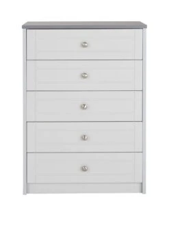 Alderley Ready Assembled Chest of 5 Drawers in White, Cream/Oak-Effect, Grey or Rustic Oak Effect/Taupe