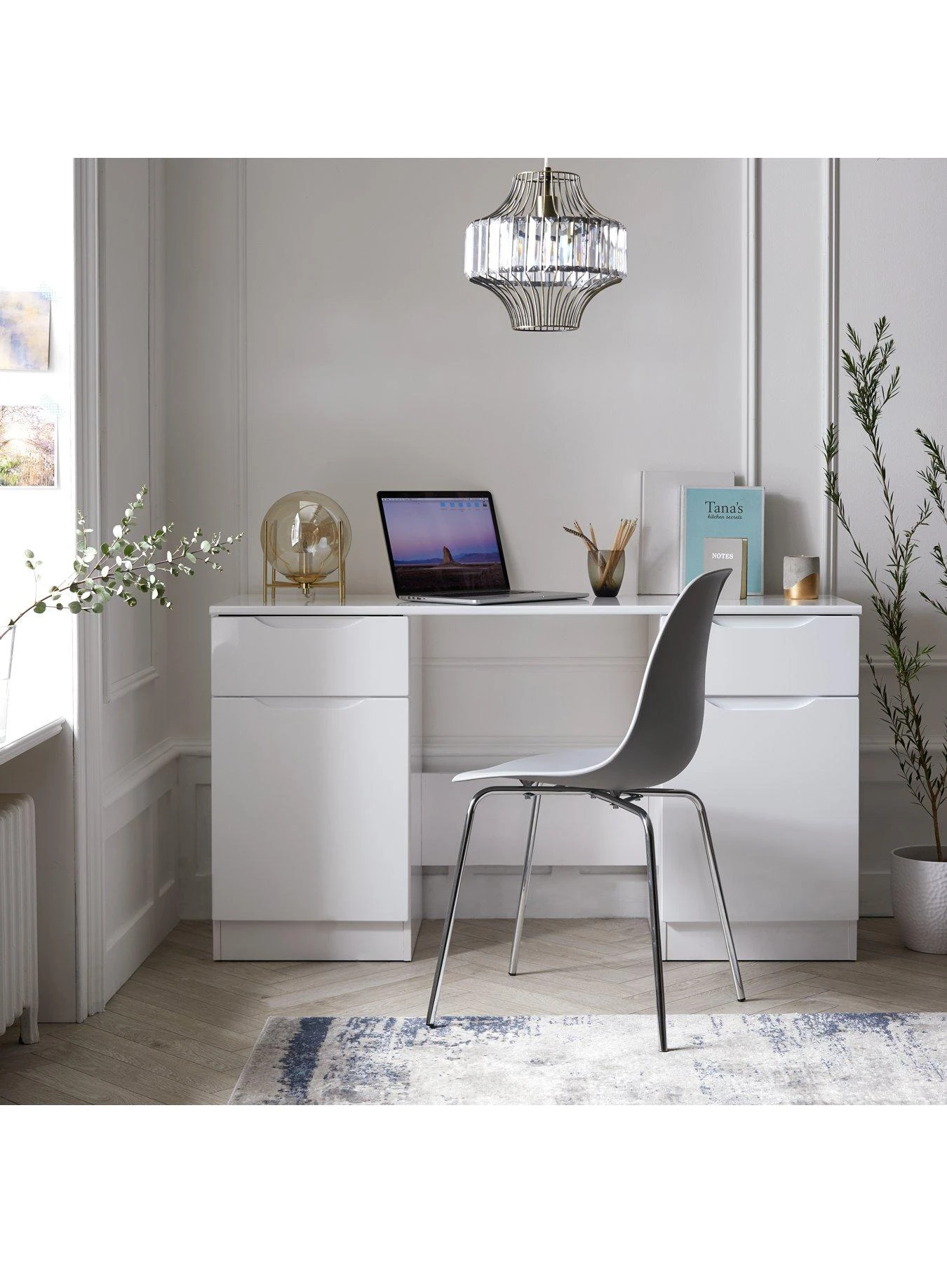 Bilbao Ready Assembled 2 Door, 2 Drawer High Gloss Desk in White