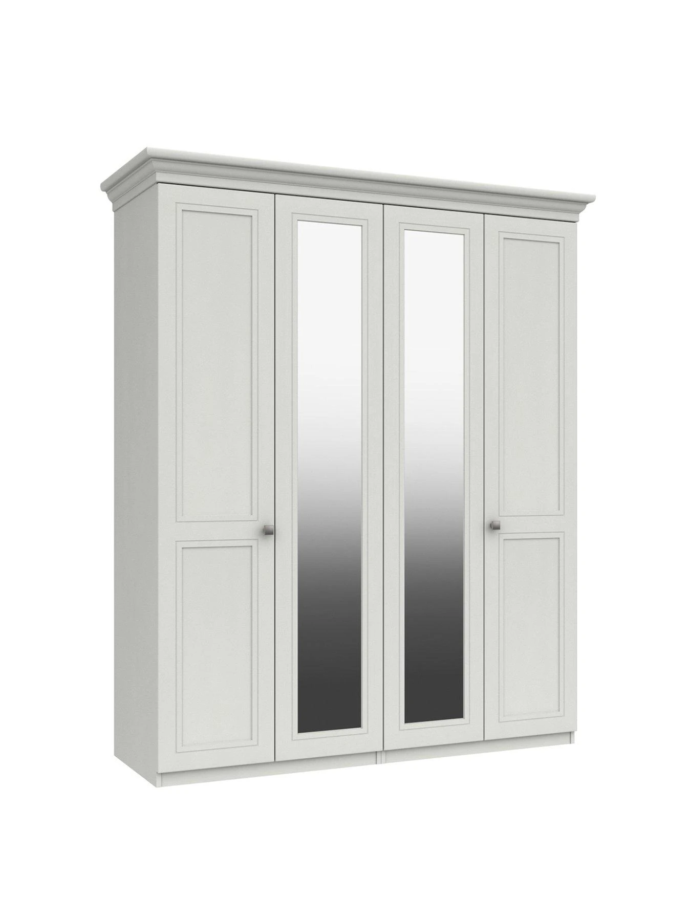 Harris Part Assembled 4 Door Mirrored Wardrobe in White – Made in the UK