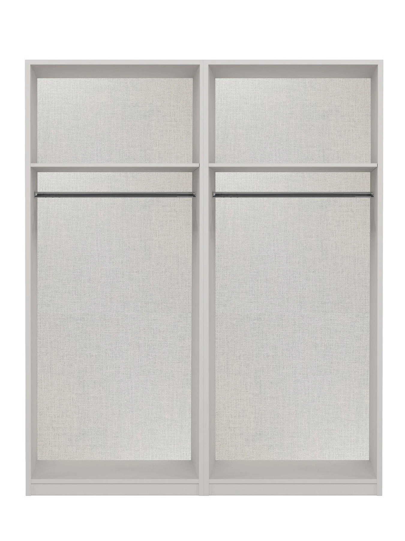 The linen-look backed interior boasts two sides (one for you, one for your partner), each with a hanging rail and high shelf for neat fashion storage.