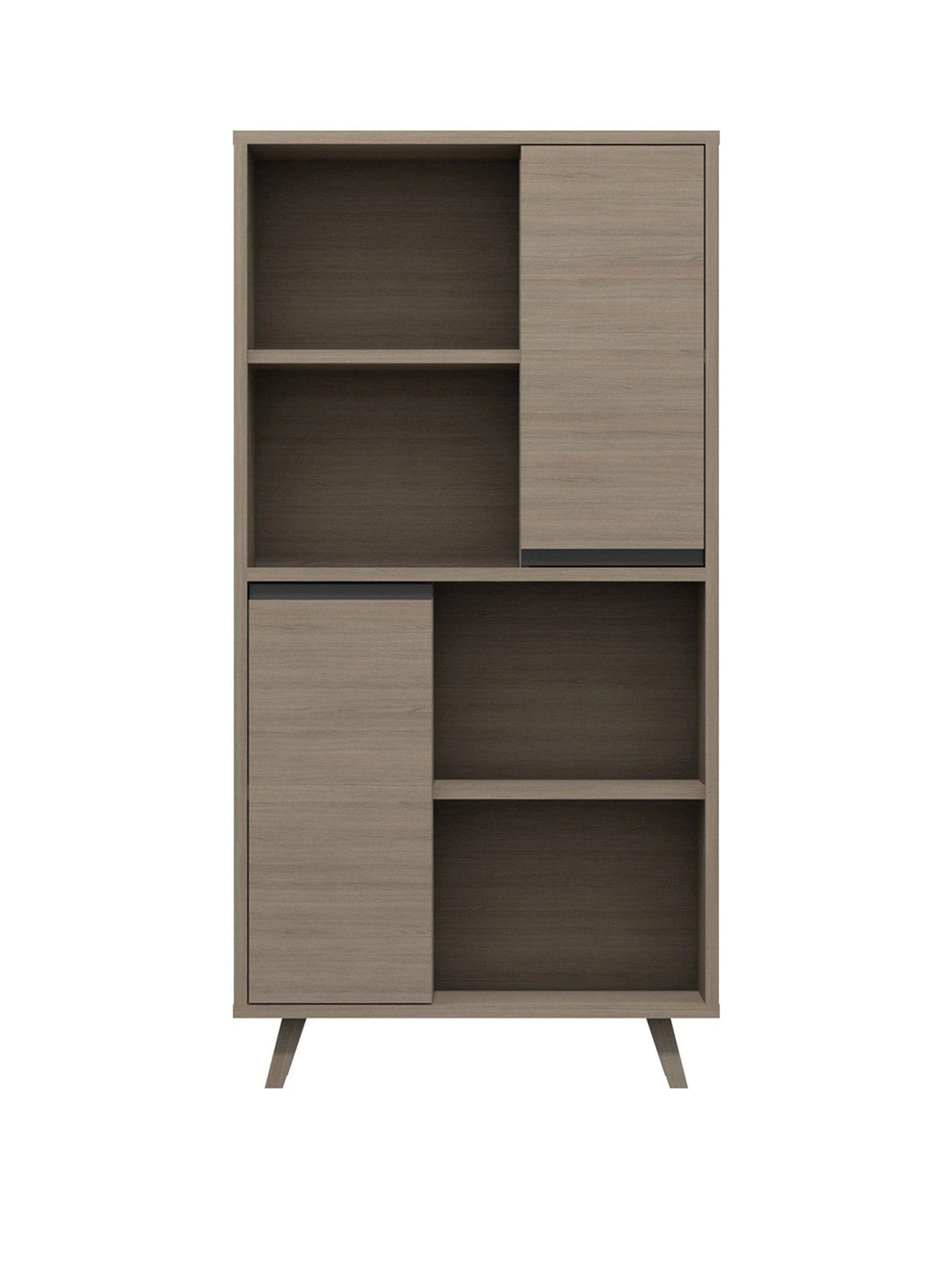 The smartly grained grey finish has an eye-catching detailed grain pattern, and the two off-setting doors are detailed with distinctive handles. You can stow away everything from clutter to video games in the cupboards, while the open shelving allows you to show off ornaments, photos and more.