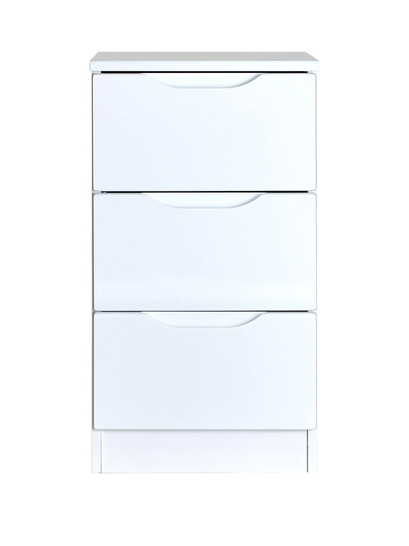 One Call Monaco Ready Assembled High Gloss 3 Drawer Bedside