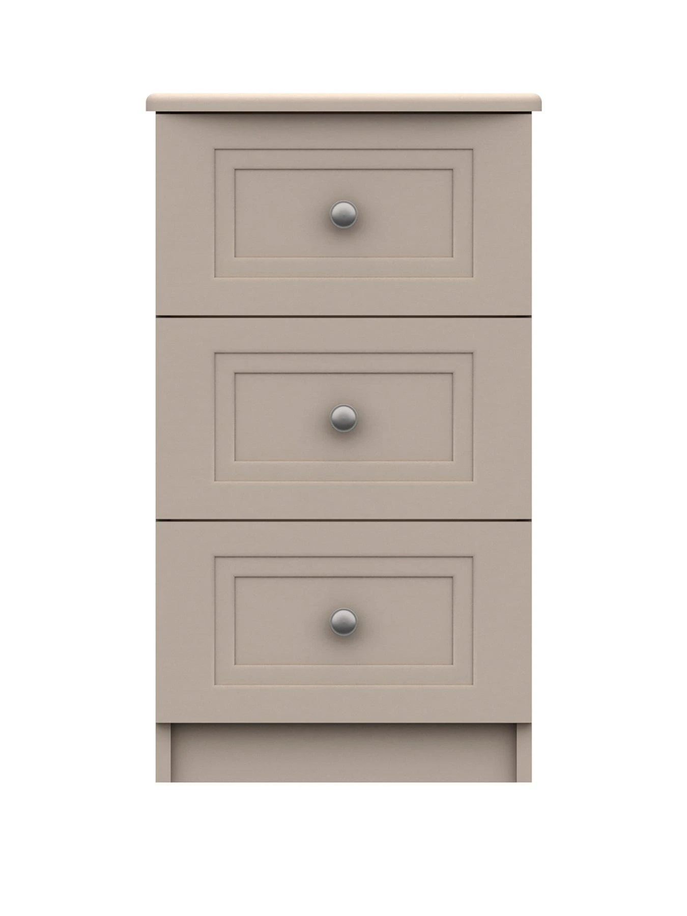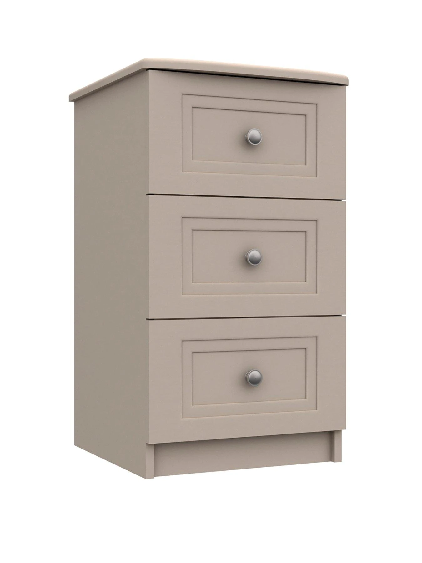 Reid Ready Assembled 3 Drawer Bedside Chest in Taupe or White – Made in the UK