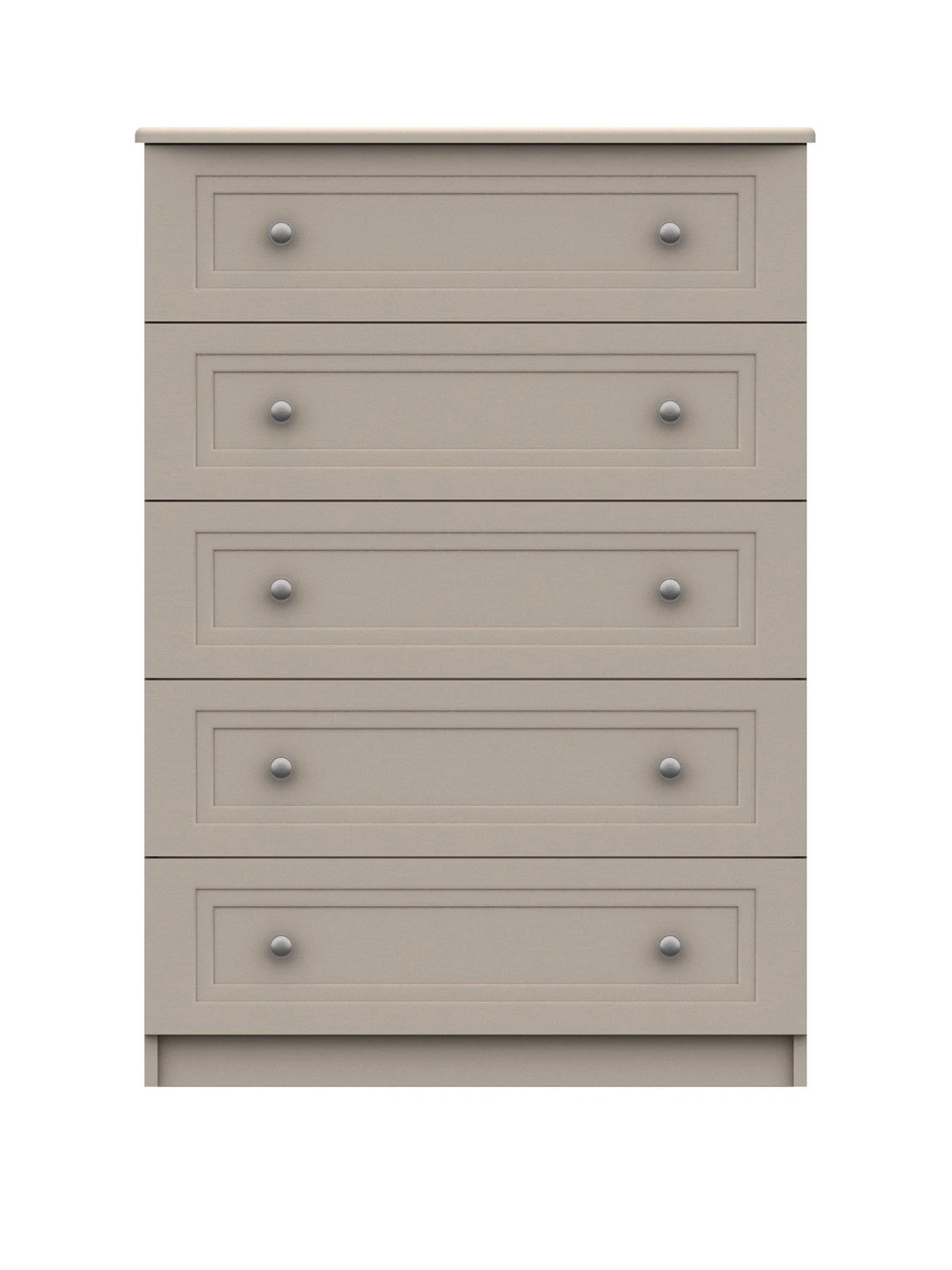Reid Ready Assembled Chest of 5 DrawersĀ in Taupe or White – Made in the UK