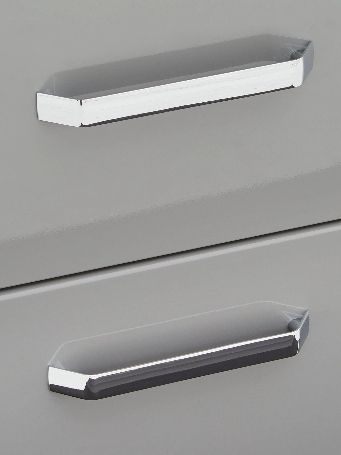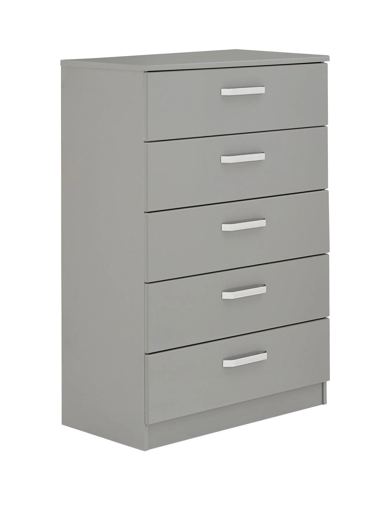 This ultra modern ready assembled bedroom furniture set flaunts a fashionable high gloss finish to the doors and drawer fronts, which ensures the soft colour choice of dark grey and white really pops.