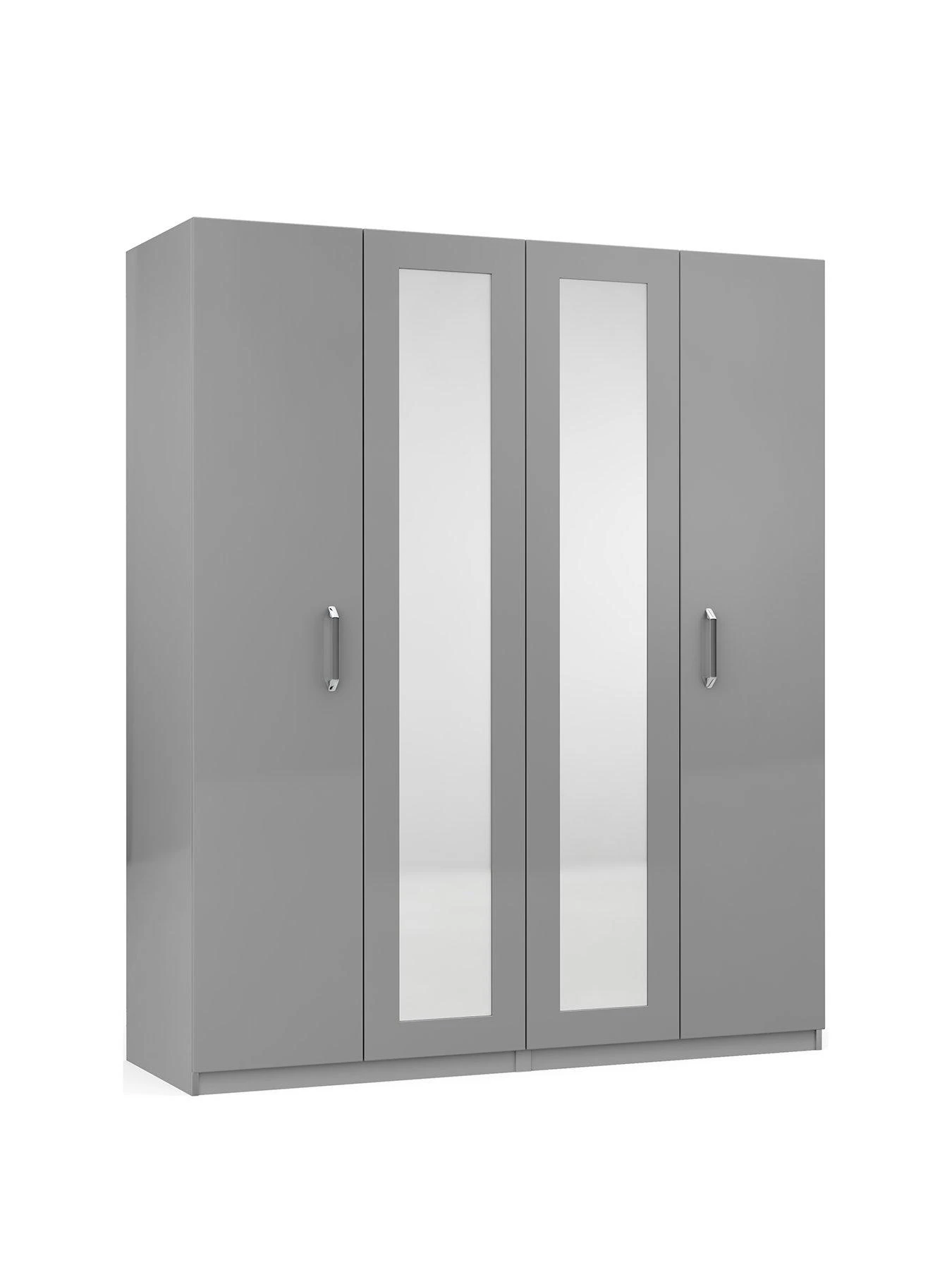 Sanford Part Assembled 4 Door High Gloss Mirrored Wardrobe in Dark Grey or White