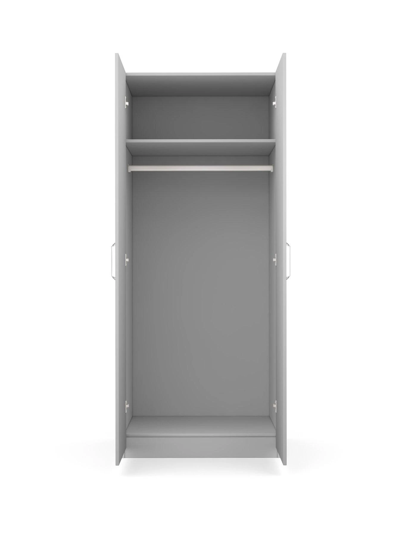 Sanford Ready Assembled 2 Door High Gloss Wardrobe in Light Grey, Dark Grey or White