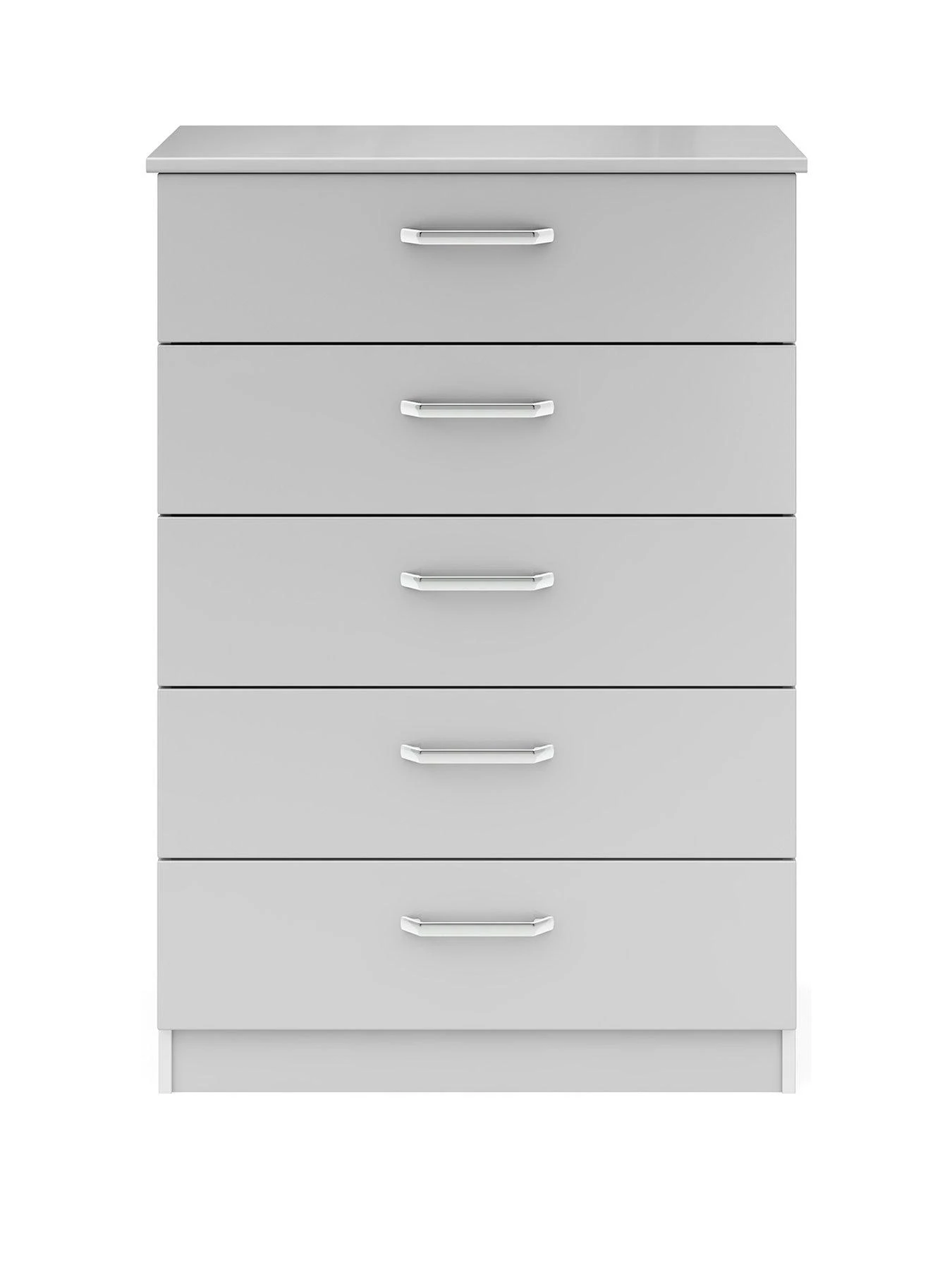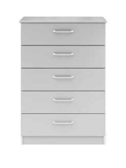 Sanford Ready Assembled High Gloss Chest of 5 Drawers in Light Grey, Dark Grey or White