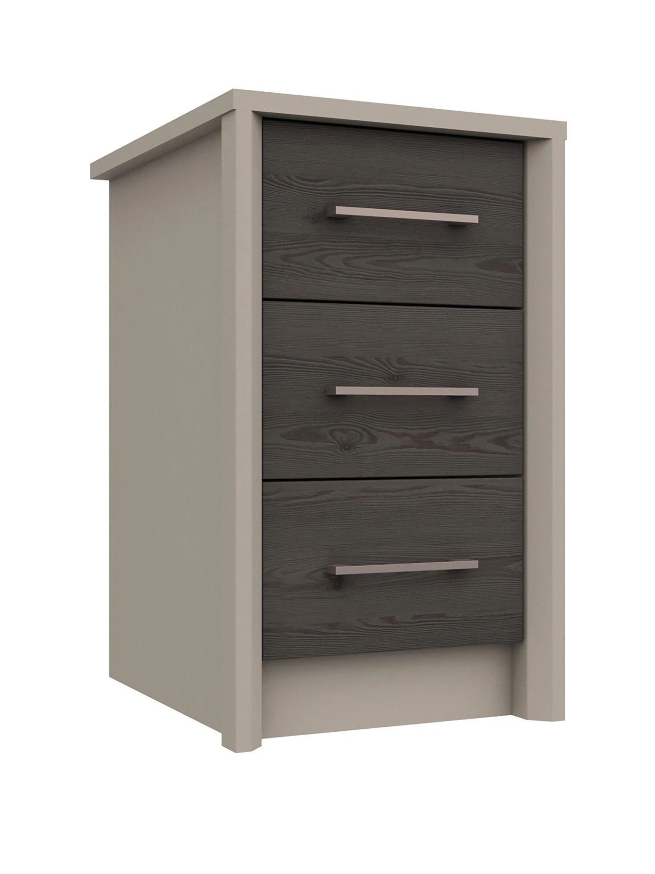 Smyth Ready Assembled 3 Drawer Bedside Chest in Taupe/Dark Grey or Taupe/Light Grey – Made in the UK
