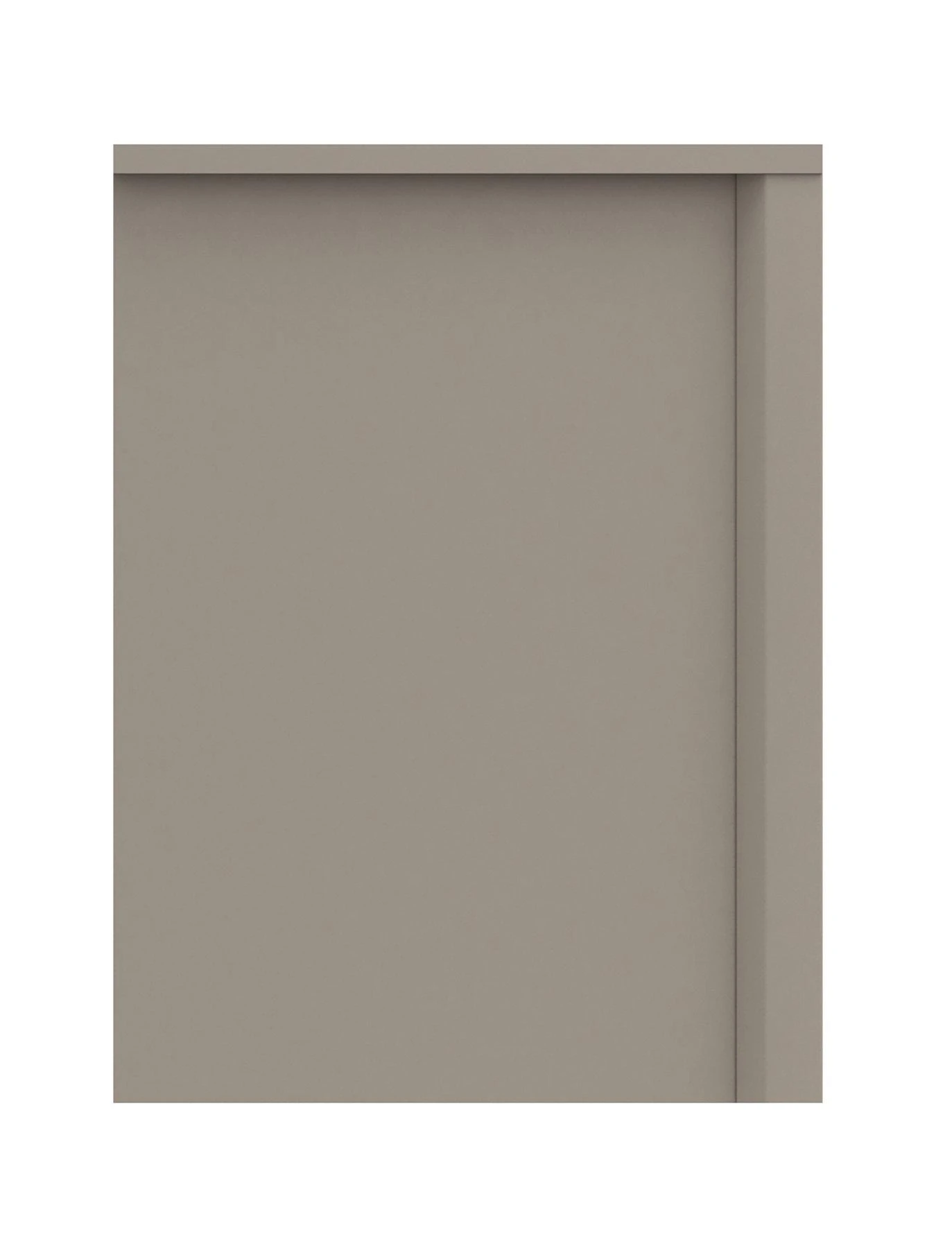 Ultra modern, this UK made Smyth bedside chest has a taupe painted look to the frame and boasts smartly angled front edges. The taupe colour contrasts eye-catchingly with grained-effect drawer fronts that come in a choice of light grey or dark grey.