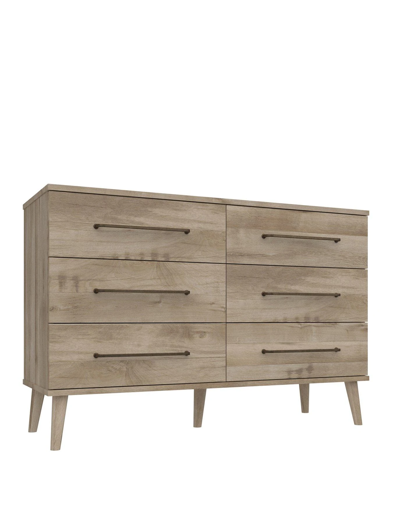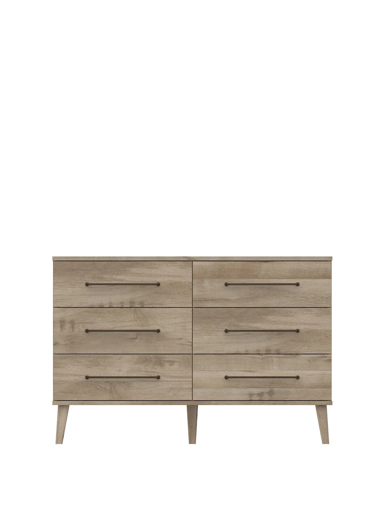 Tuscany Ready Assembled Wide 3 + 3 Chest of Drawers in Oak Effect or Dark Oak Effect