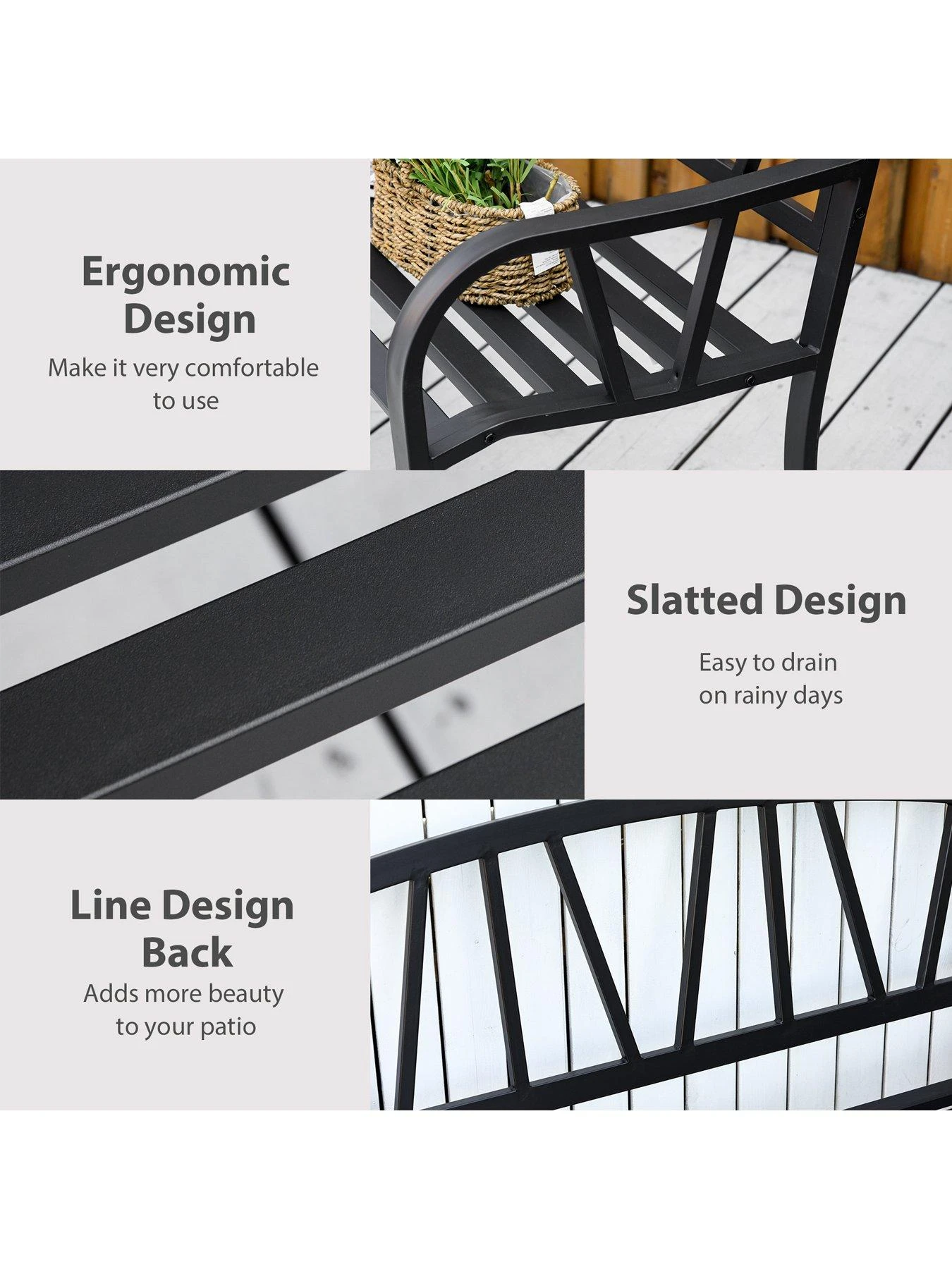 Make your garden complete with this outdoor bench from Outsunny. Crafted from metal, the structure of the outside bench is sturdy and tough for daily use all-year round.