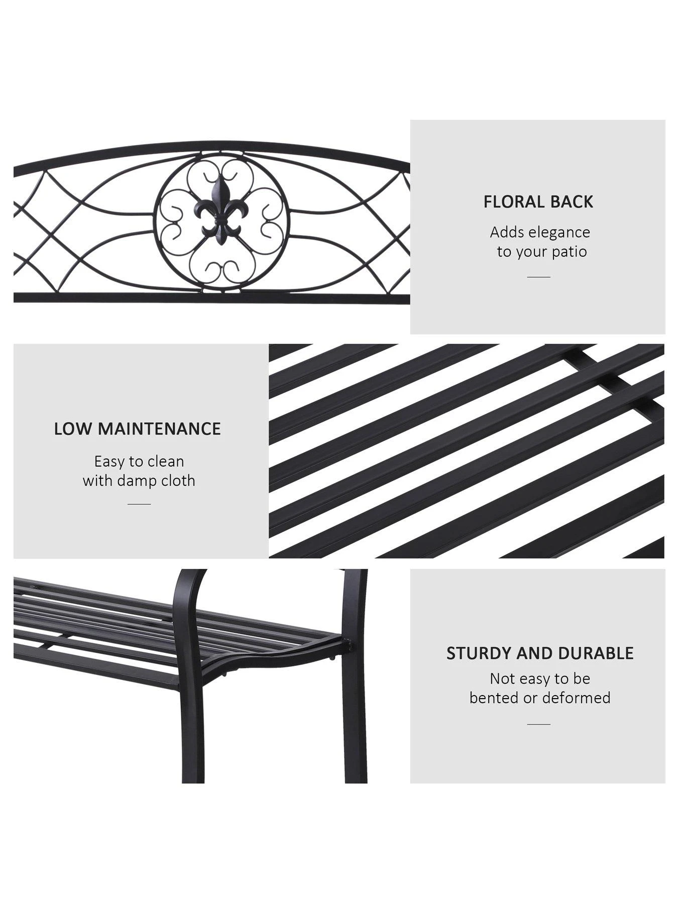 OutSunny Metal Frame Bench, 128Lx50Wx91H cm-Black