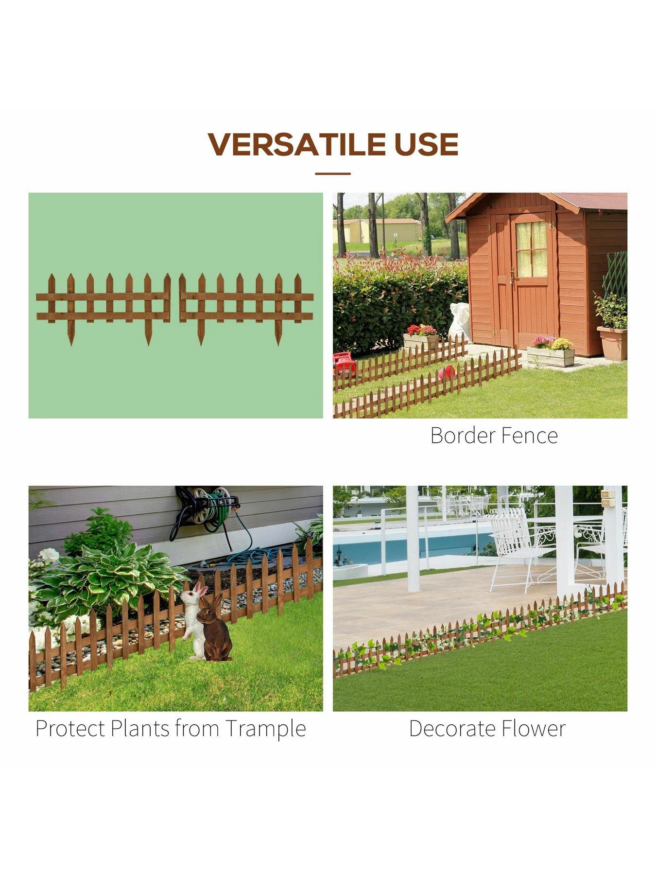 OutSunny Pack of 12 Wooden Border Fences Garden Fixed Picket Fence for Lawn Brown