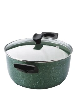 Featuring a 5-layer plant-based scratch proof non-stick finish, its glass lid helps retain heat and allows you check on the progress of your stocks, broths and stews without the need to remove it, while soft grip, stay cool handles provide comfort when cooking.
