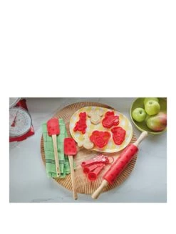 Disney Bake with Mickey Mouse by Prestige Kitchen Utensils Set – Measuring Spoons, Set of 2 Silicone Spatulas, Silicone Rolling Pin and Set of 4 Cookie Cutters