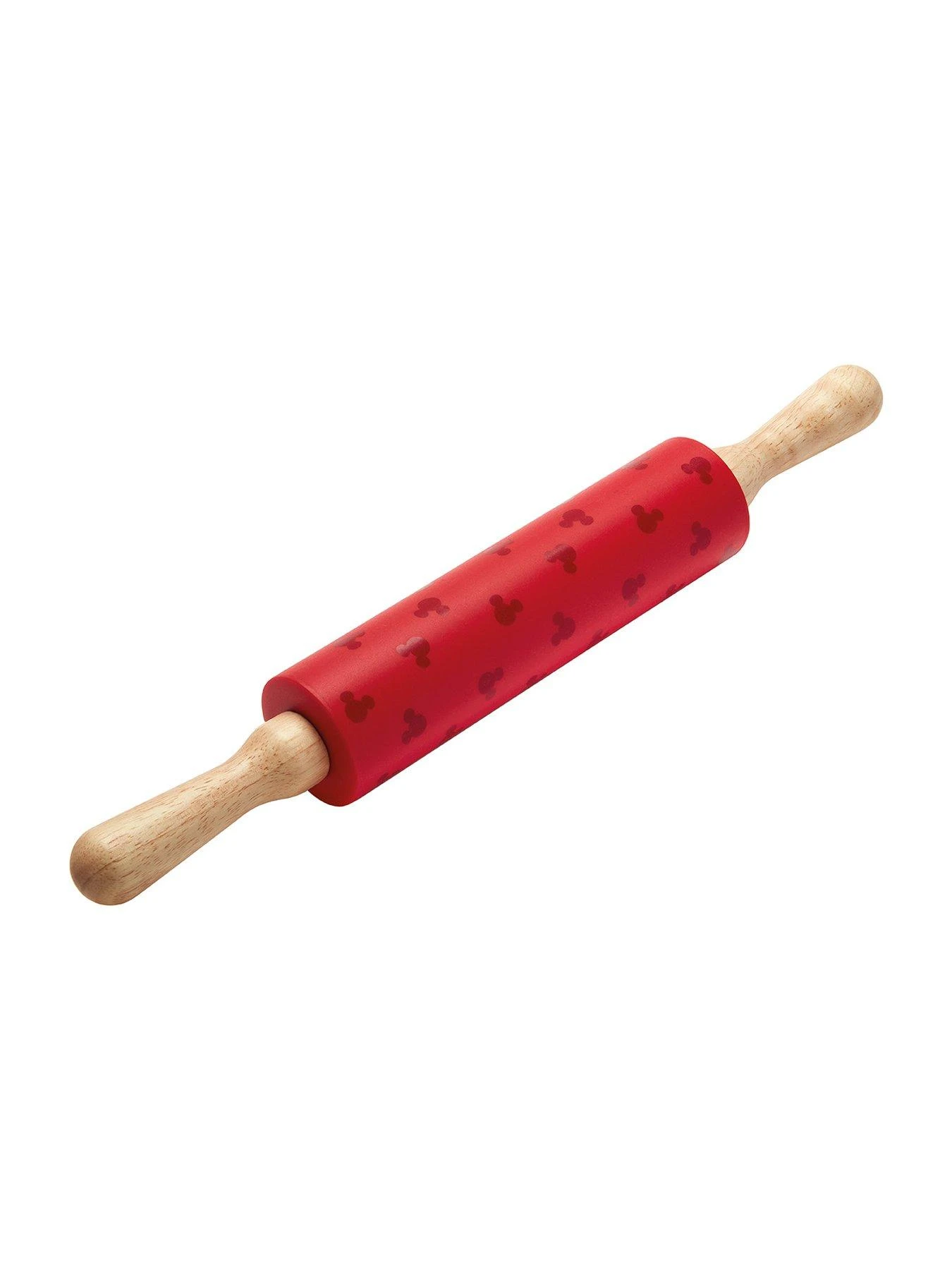 – Rolling pin with a non-stick silicone barrel with Mickey Mouse logo pattern and long wooden handles