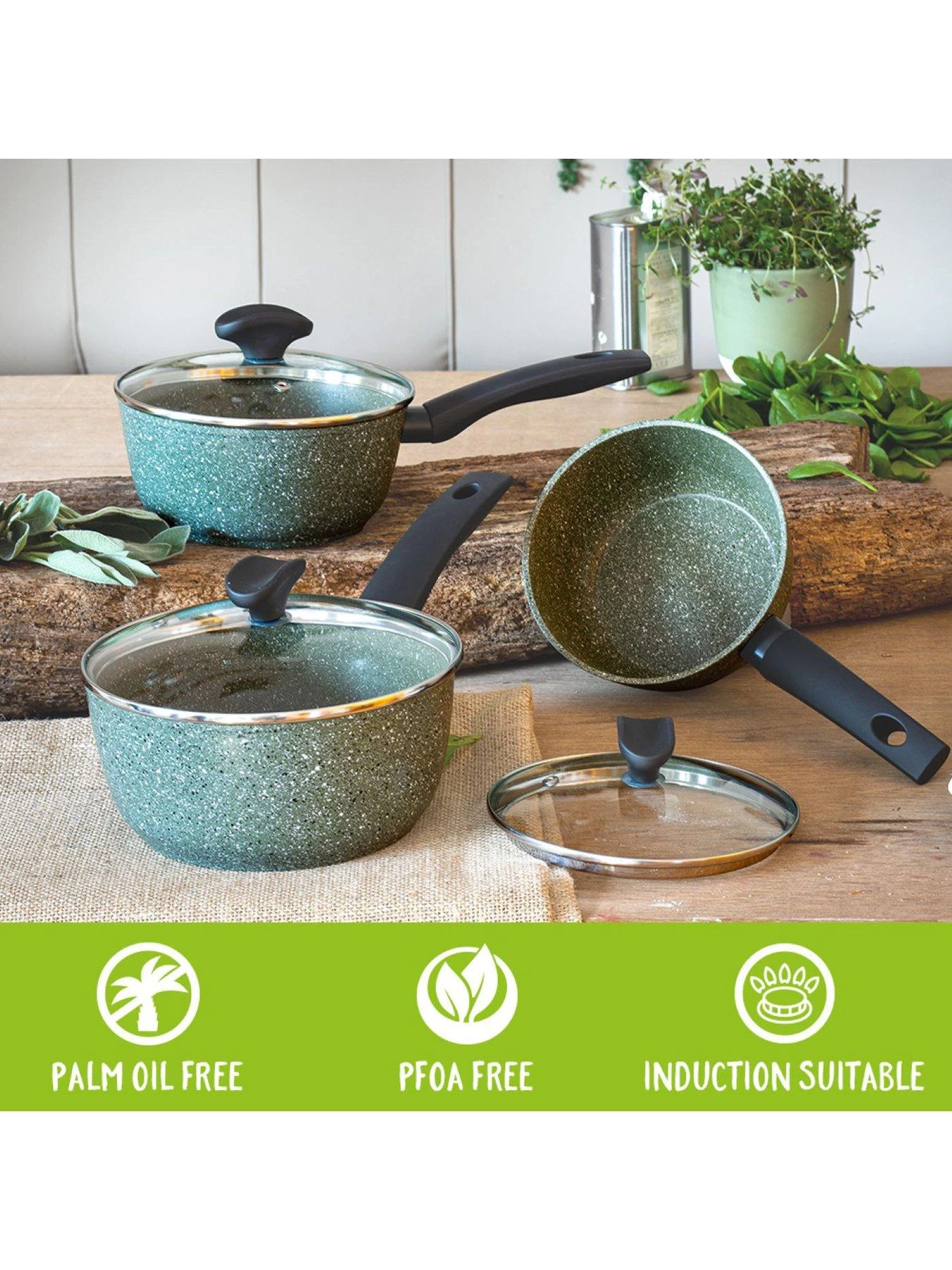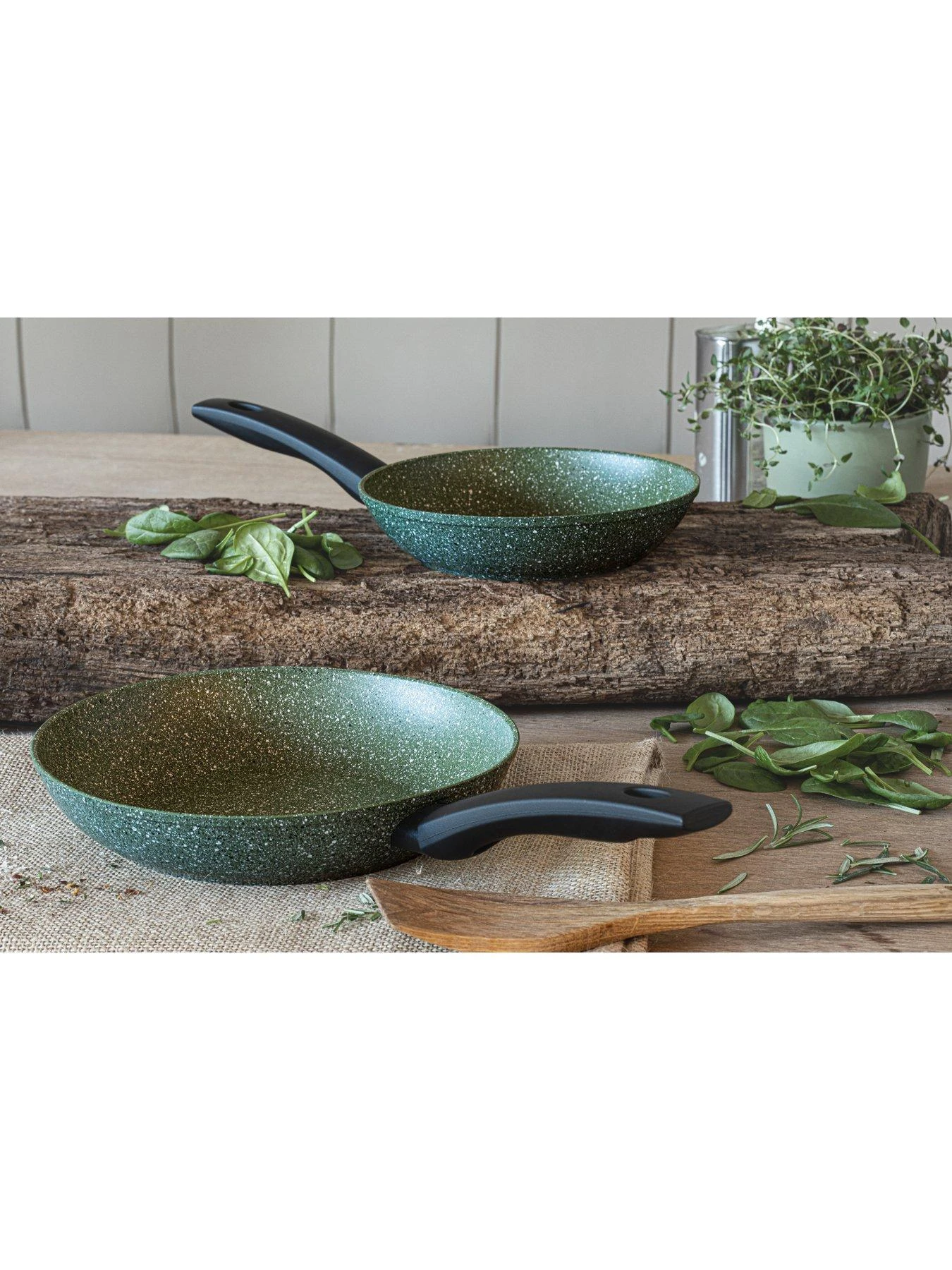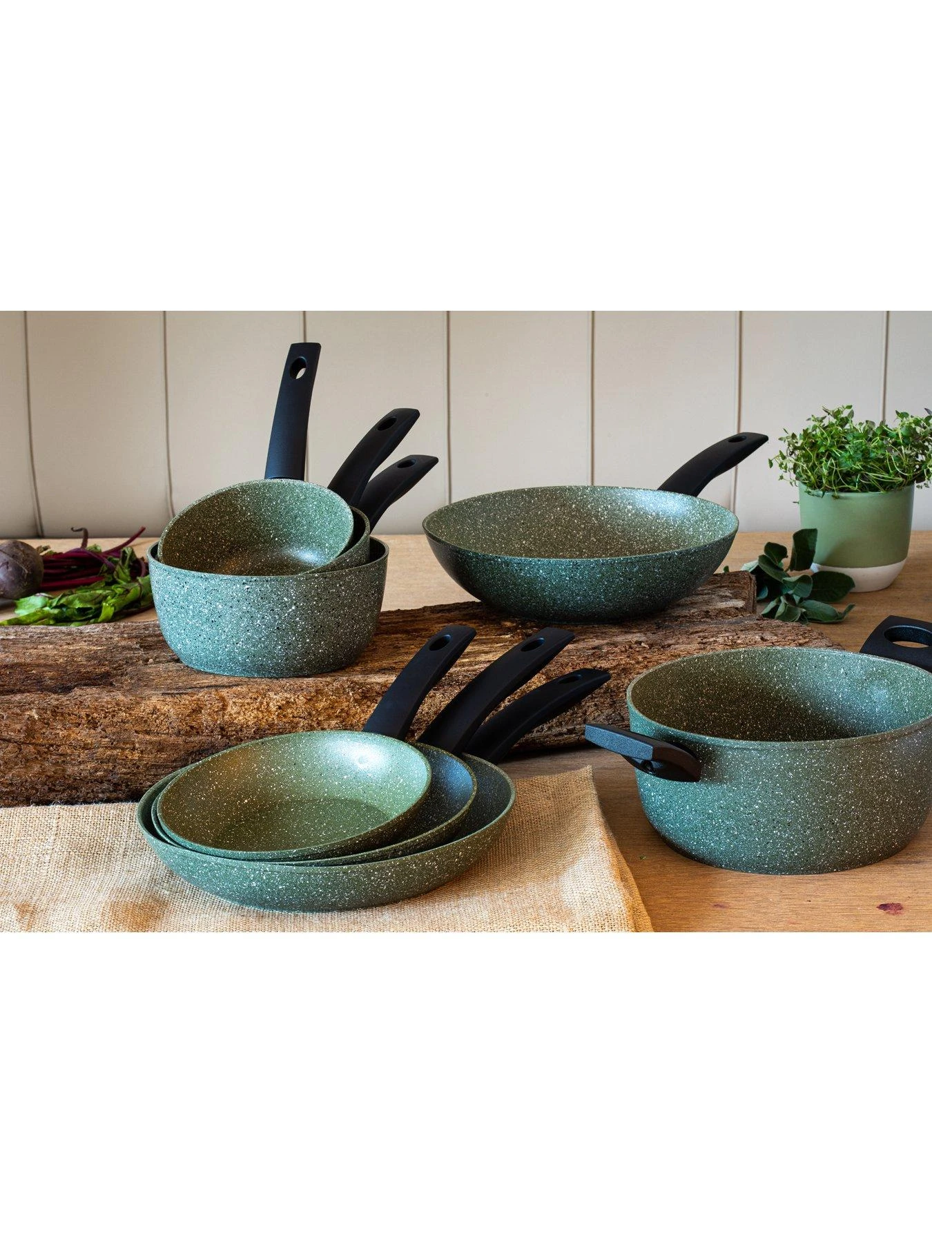 The non-stick pan benefits from a soft grip, stay cool handle for comfort when cooking, and its stylish green shade will add some classy colour to your kitchen.