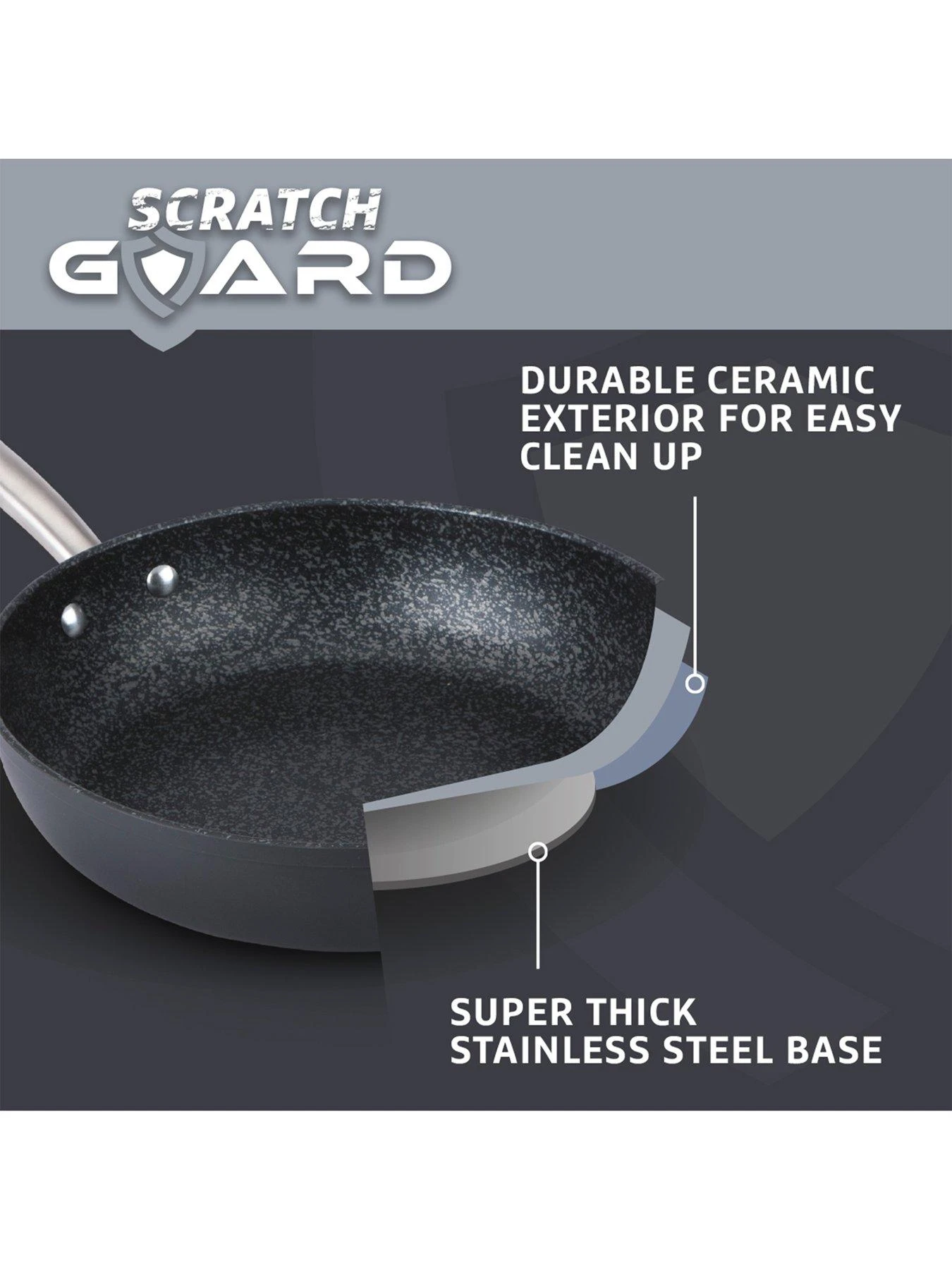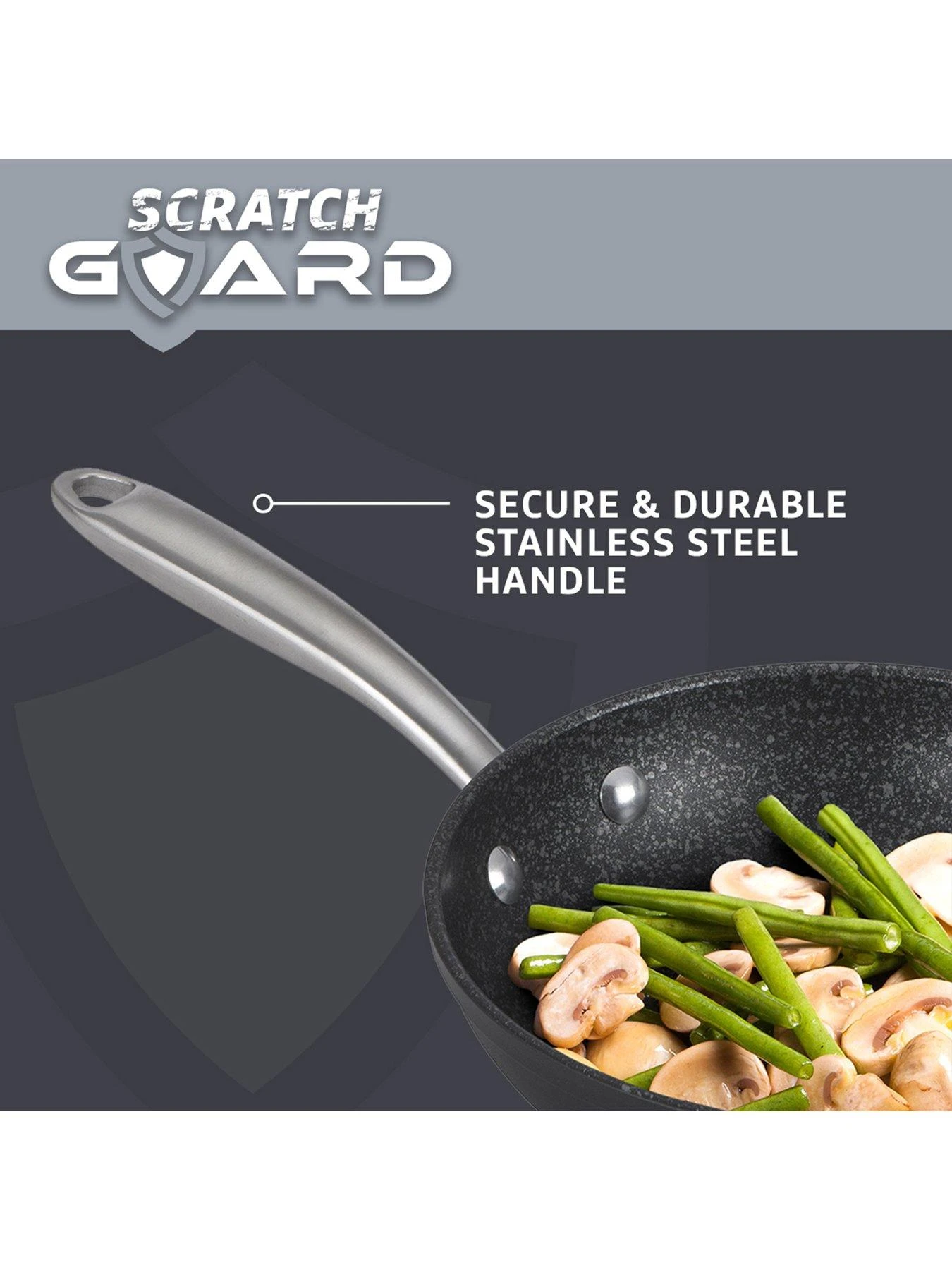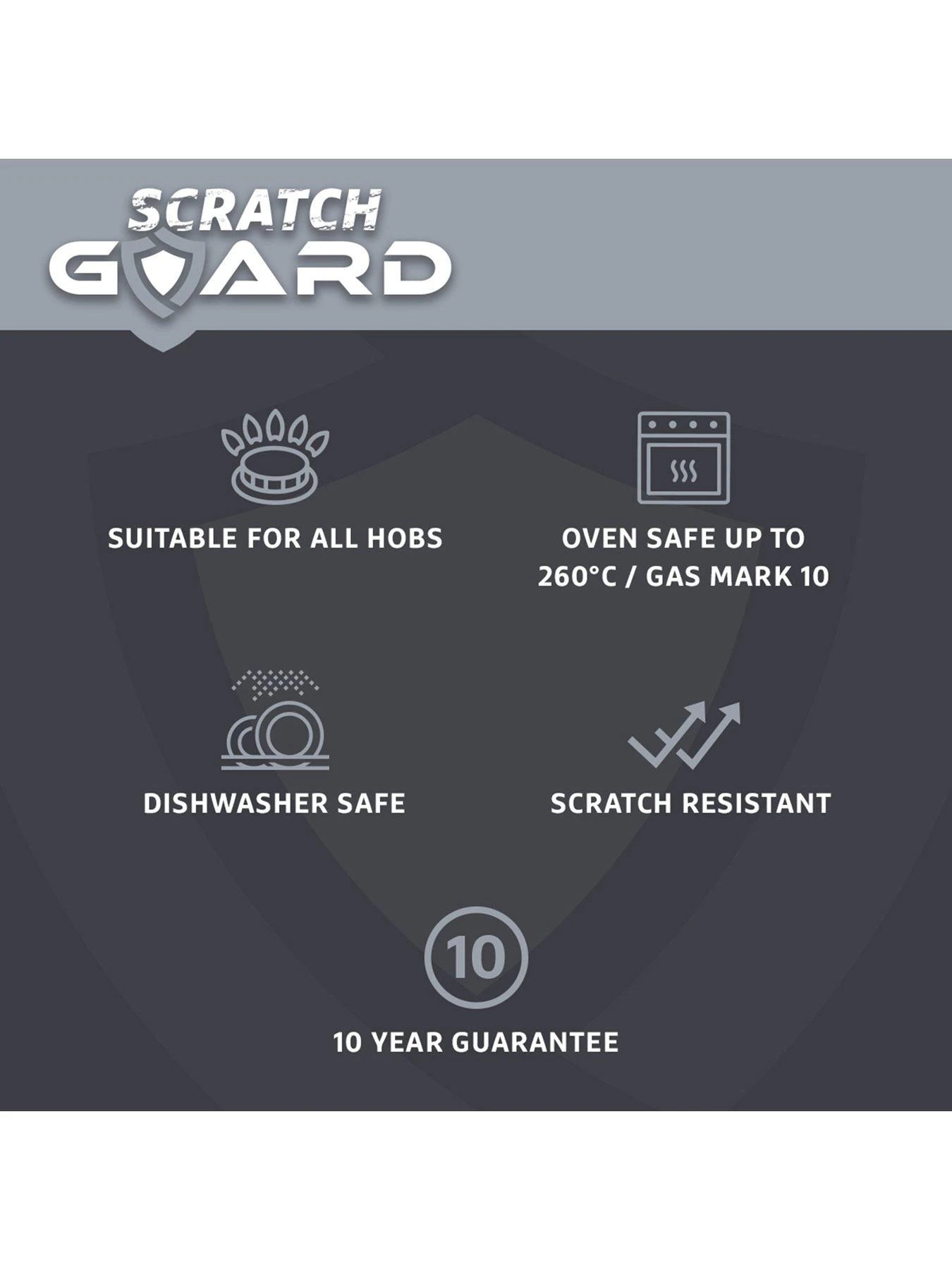 An essential addition to your kitchen, it also boasts Scratch Guard, which protects it against damage from metal utensils. The durable, thick stainless steel base ensures fast, even heat distribution that eliminates the hot spots that can cause burning, and the pan is even oven safe up to 260c/gas mark 10.