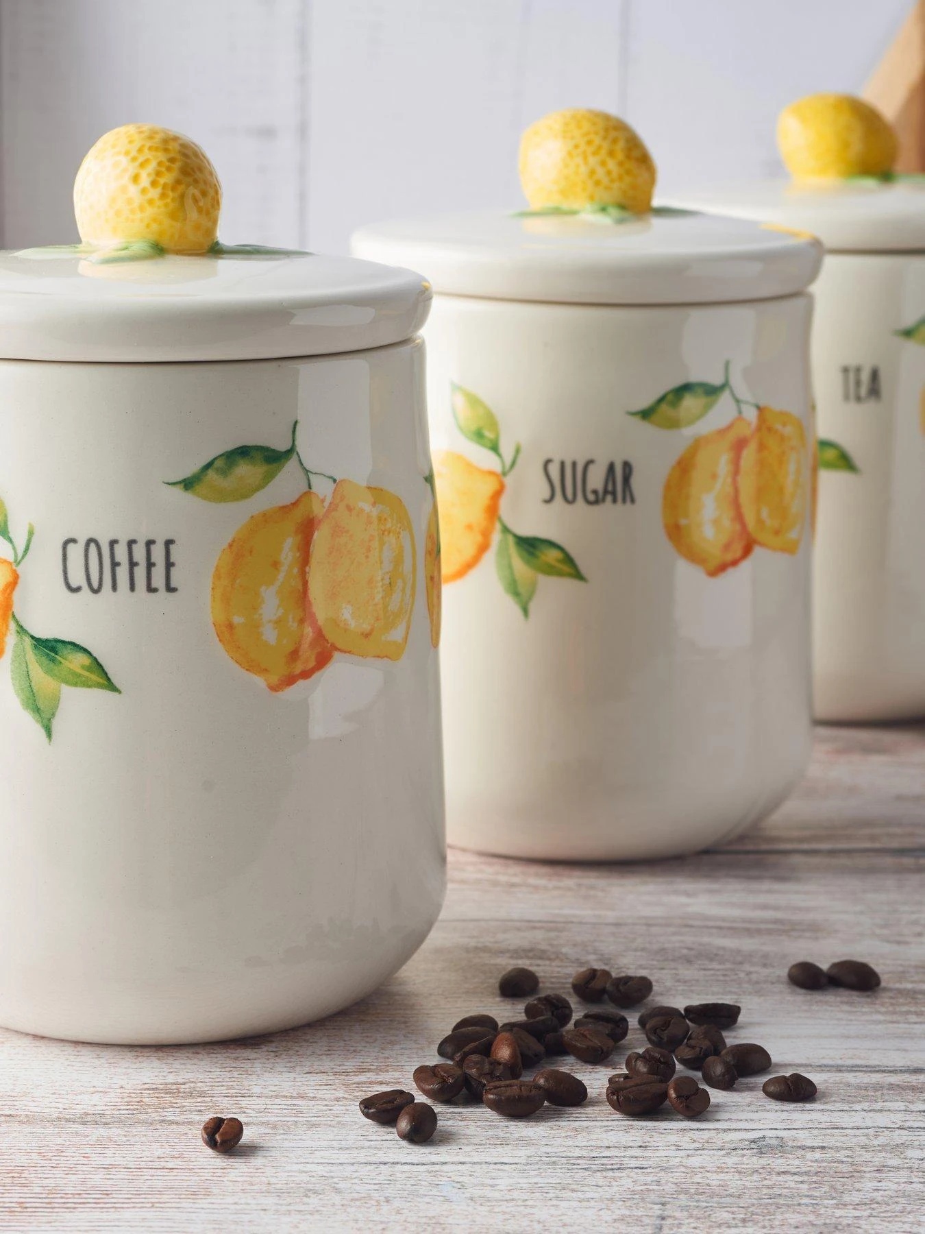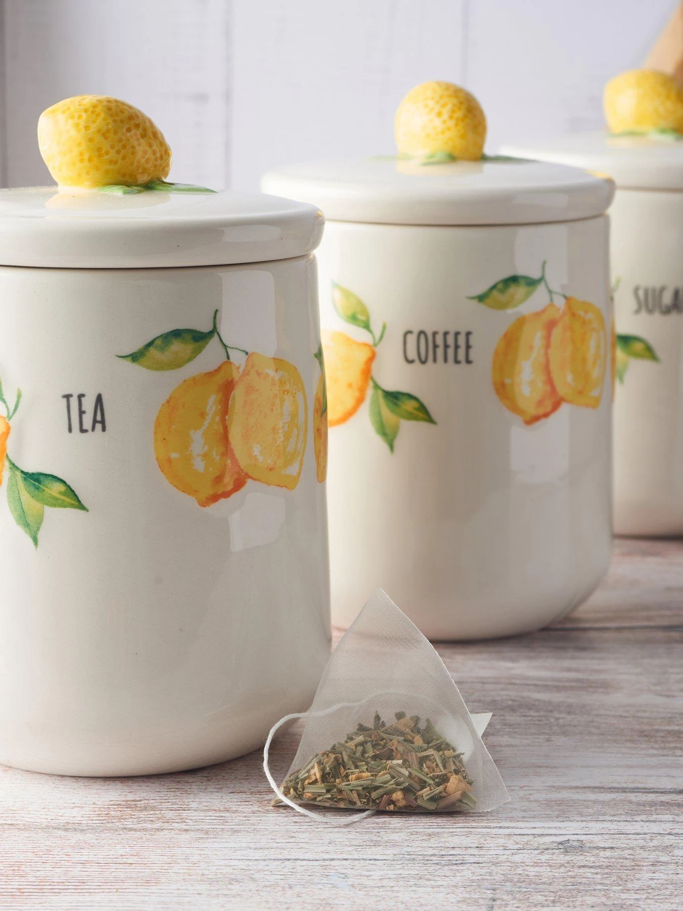 Beautifully made from high-quality, durable ceramic, the contemporary shapes are brought to life by bright lemon artwork, along with text reading tea, coffee or sugar across the face. Each airtight lid will keep contents fresher for longer, and they’re all finished with 3D lemon handles on top.