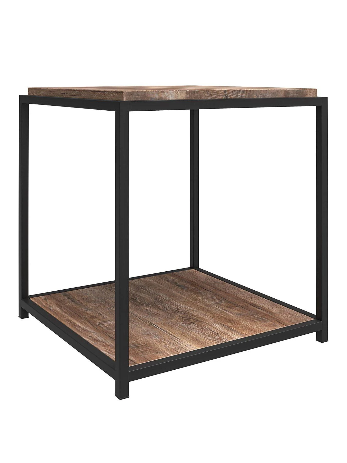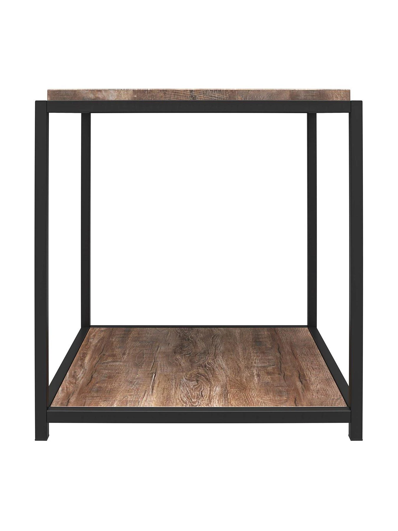 - Made of laminated particleboard, the distressed brown woodgrain finish pairs with the sturdy metal frame for a gorgeous statement piece