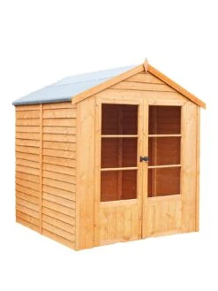 The very popular and practical Oatland Summerhouse is superb value for money. It is an attractive building with a rustic look which can be used for many purposes and makes a feature in the garden or on the patio. With double doors to the front giving excellent access, The Oatland is constructed from high grade overlap cladding to the walls on 34mm strong framing. Finished with a honey brown basecoat preservative treatment ready for your own top coat of stain or paint. Imperial measurements are rounded so please refer to the metric sizes for accuracy. Allowance should be made for the roof overhang and for access around the outside during construction and subsequent treatment.