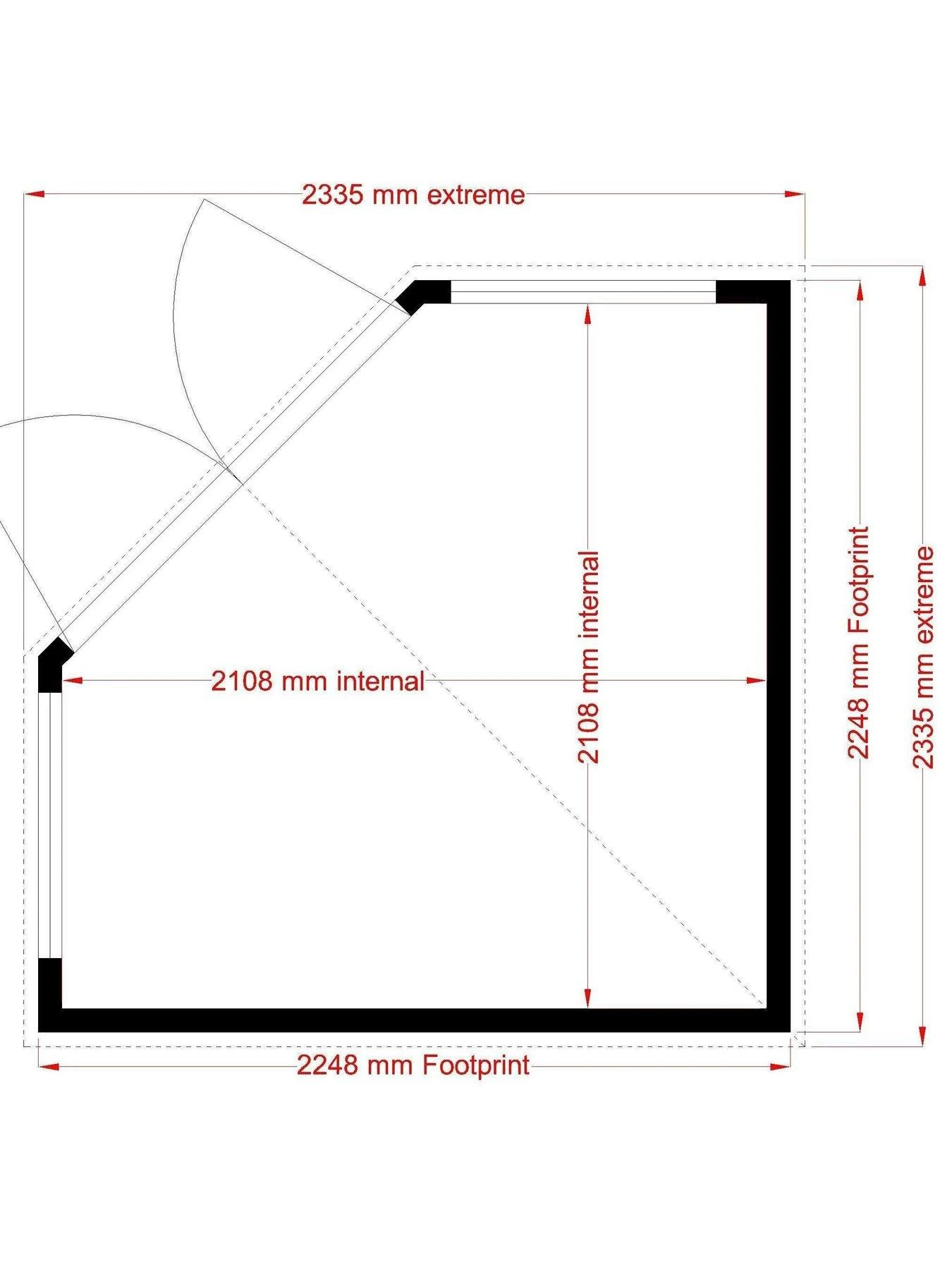 Designed to fit neatly into a corner space, the Hampton Summerhouse makes a perfect retreat. Ideal for both relaxing and storage, it makes an attractive addition to any outdoor space. Double doors with full-length Georgian style glazing lead into a spacious interior. Thanks to the doors and two large, opening windows that open for ventilation, the summerhouse is flooded with light. Ideal for enjoying a glass of wine on a summer evening or encouraging your seedlings in spring.