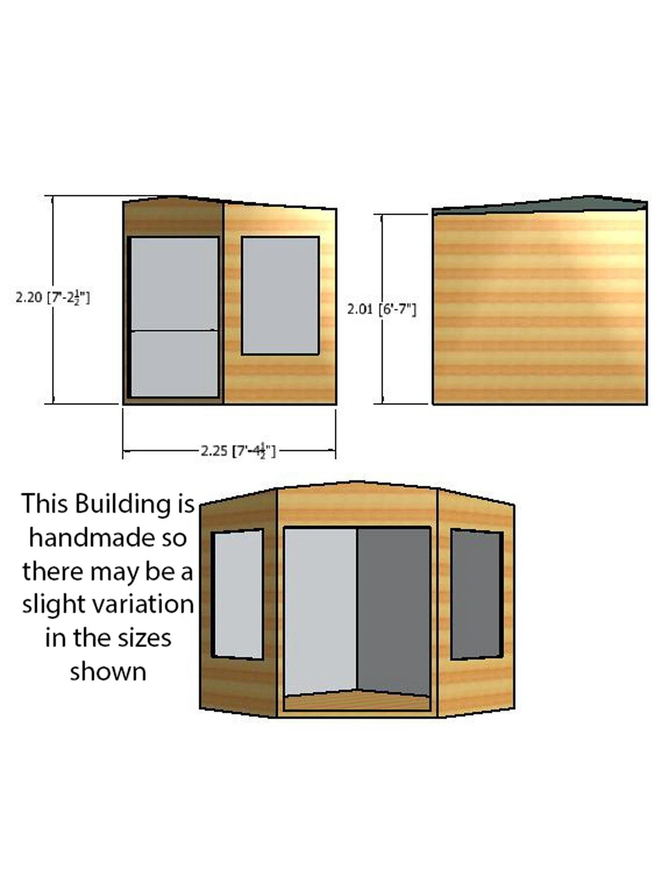 This fabulous summerhouse is strongly constructed with 34mm square framing and clad with planed 12mm Shiplap tongue and groove boards made only from the highest grade, slow grown timber. It also comes is supplied with a dip treated base coat preservative ready for you to top coat to your own preference immediately after installation.