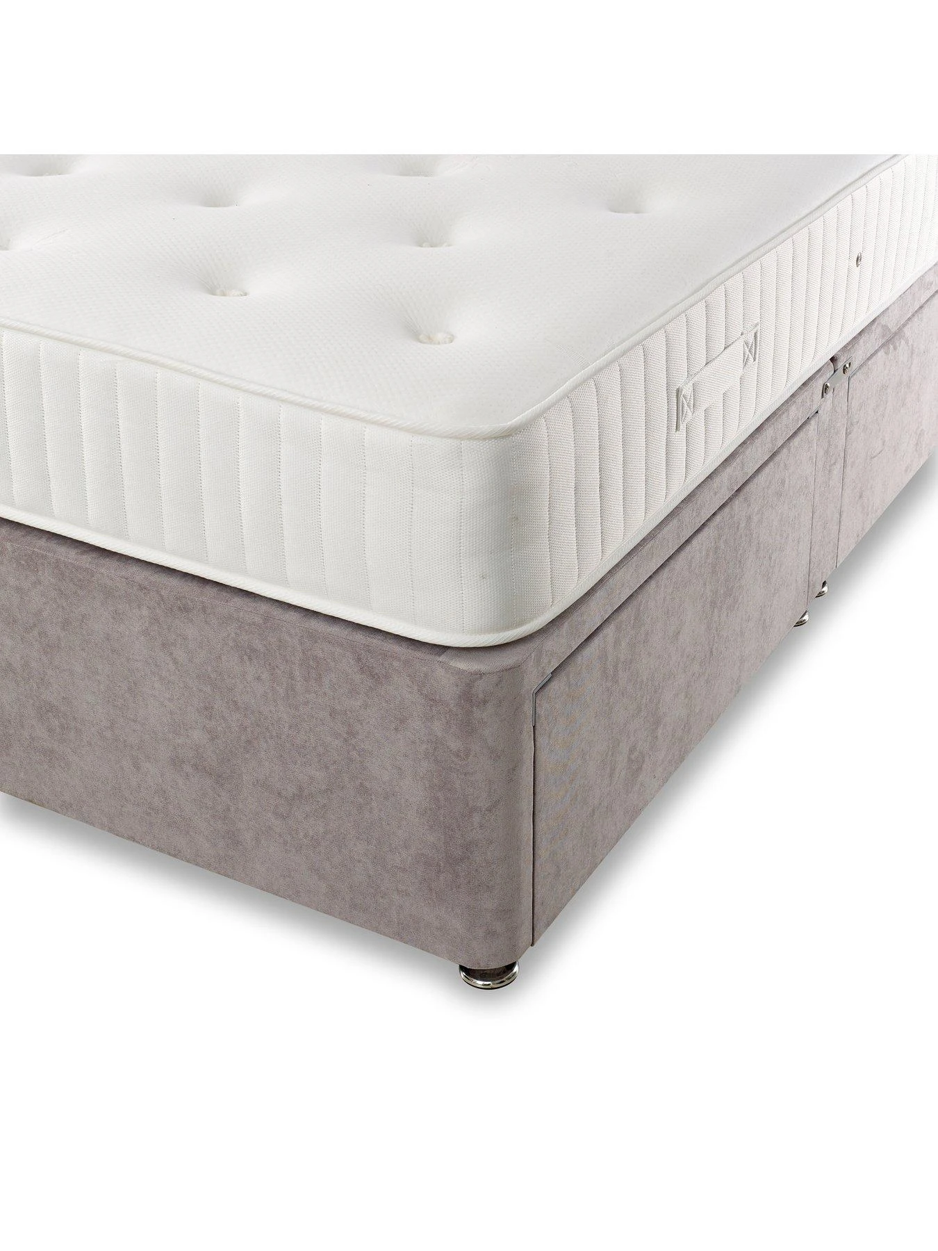 Tivoli Ortho Divan Set in Single, Double and King Sizes: with Storage or Without Please note: the headboard shown with this divan is not included but can be purchased separately. The Tivoli Mattress consists of open coil orthopaedic unit with layers of supportive fillings. The fabric is 100% Polyester with a soft knit stretch cover. The Bed Base is upholstered in a fantastic choice of fabric colours designed to coordinate with your bedroom. The base is constructed from high quality timber and materials. It provides excellent support for all types of mattress, including heavy mattresses. The base is also available with an excellent choice of drawer storage options, making it a great space saving solution for any bedroom, comes complete with stylish silver chrome glides. Fits all Headboards (can be attached at either end). The Tivoli Ortho Divan Set is manufactured by a National Bed Federation member recognised for outstanding product quality and service.