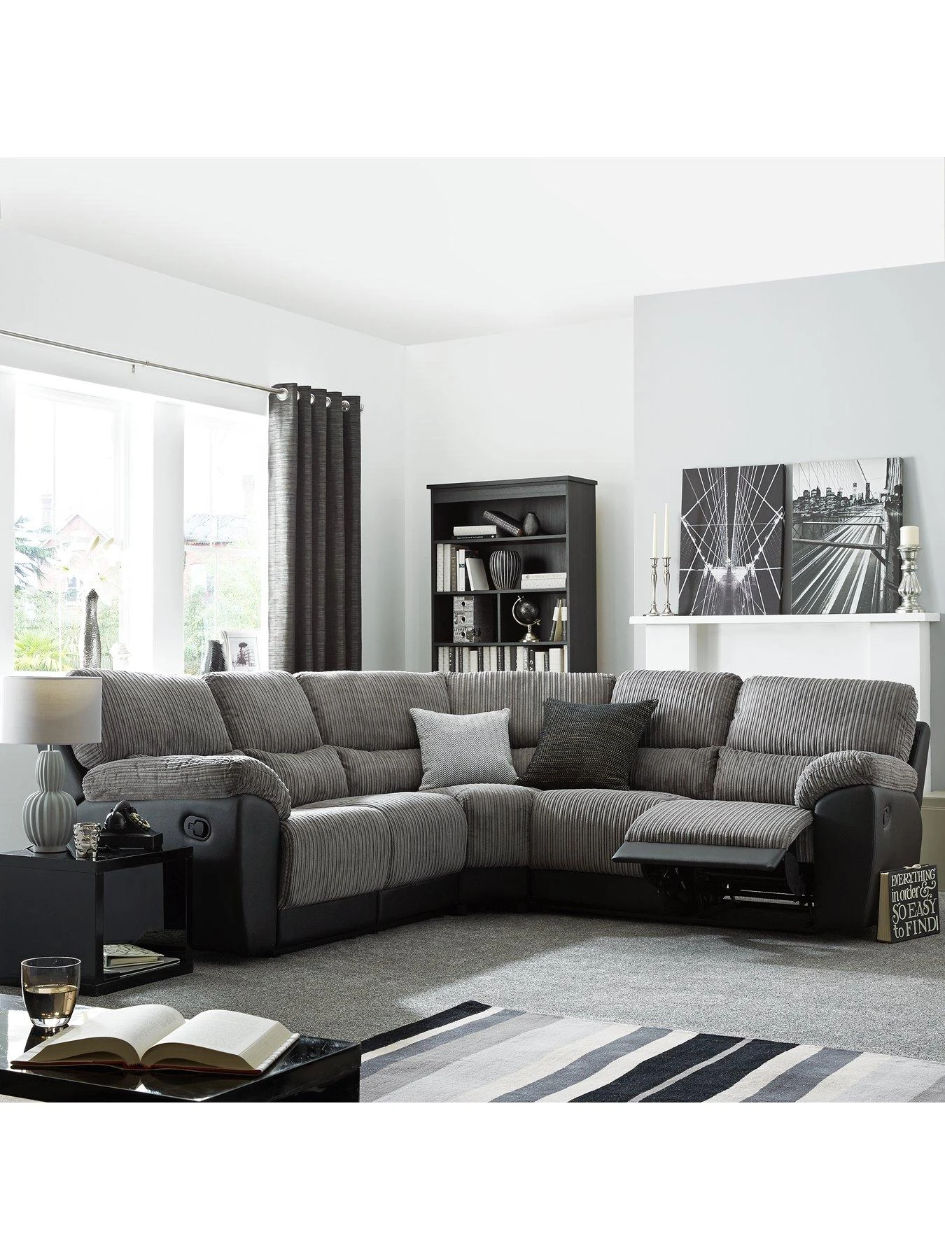 Sienna Fabric and Faux Leather Recliner Corner Group Sofa in Black or Chocolate
