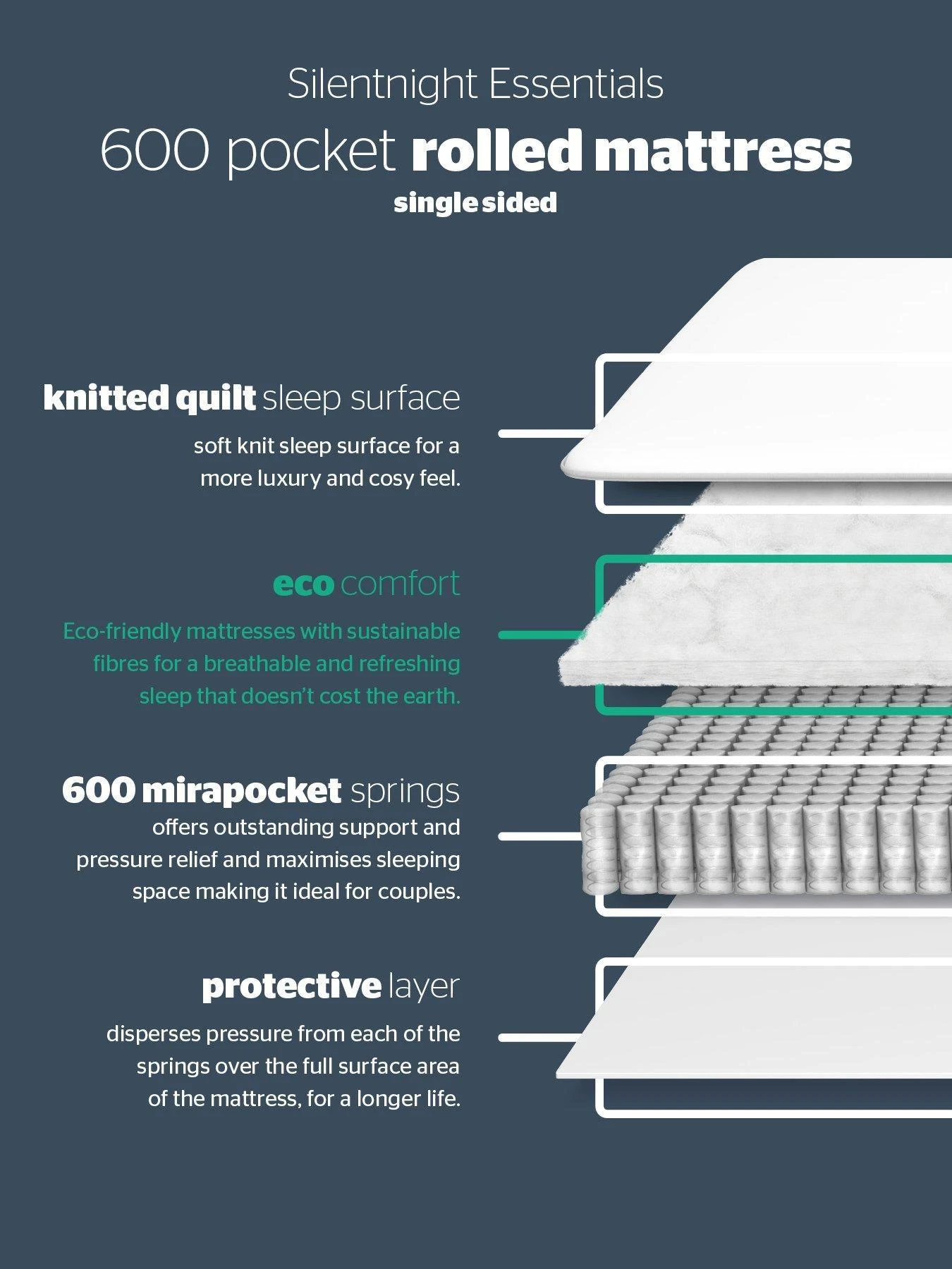Silentnight 600 Pocket Rolled Mattress – Medium in Single, Double and King Sizes