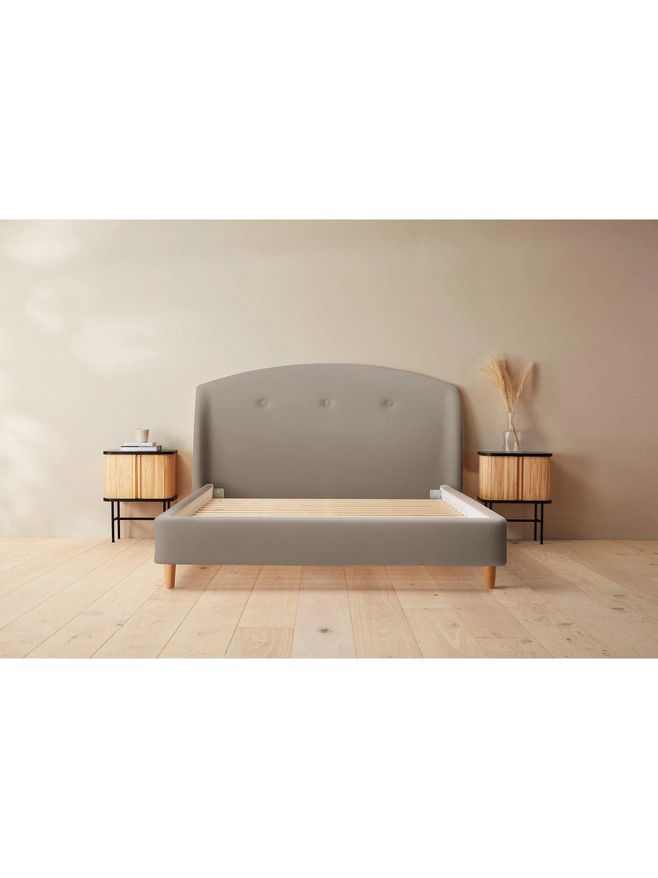 Handcrafted here in the UK using premium upholstery fabric and FSC® (C104461) Certified Timber, the Evana bedframe is complete with three tufted buttons, a tall, padded headboard for optimum comfort.
