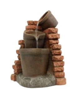 This cascading water feature from Gardenwize features three elegantly crafted pots that are adjacent to a rustic-finish brick wall that gently trickles water downwards for calming and soothing effect.