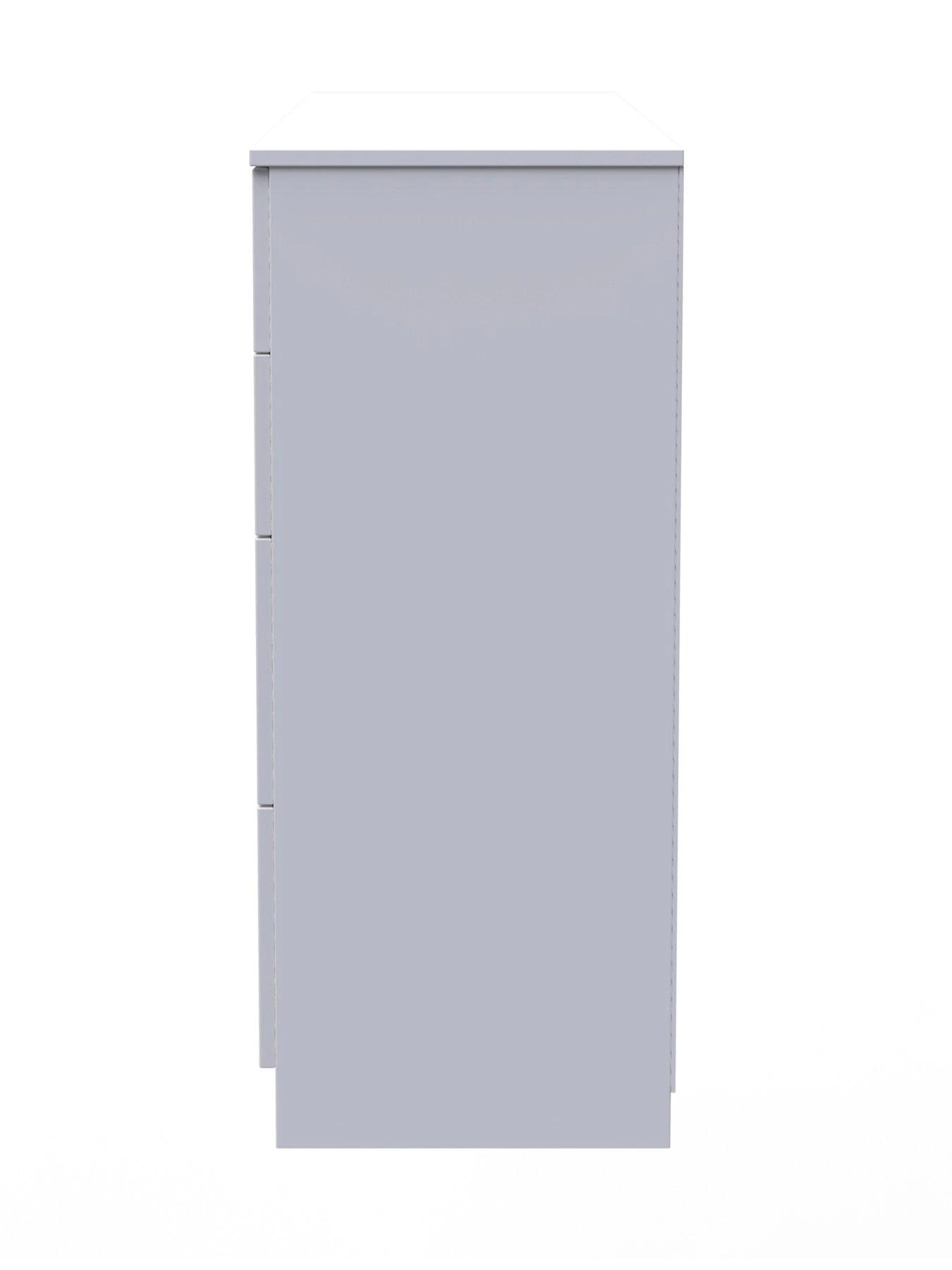 This deep 4 drawer chest of drawers is practical and stylish. Perfect for any home as a free standing storage unit. A Fresh modern range, with solid metal pull handles and comes in a range of scratch resistant gloss or matt finishes. All our furniture is made in the United Kingdom, to the highest quality. It is delivered direct to your location of choice by one of our two man delivery teams, and come full assembled (although legs may be removed to prevent damage in transit).