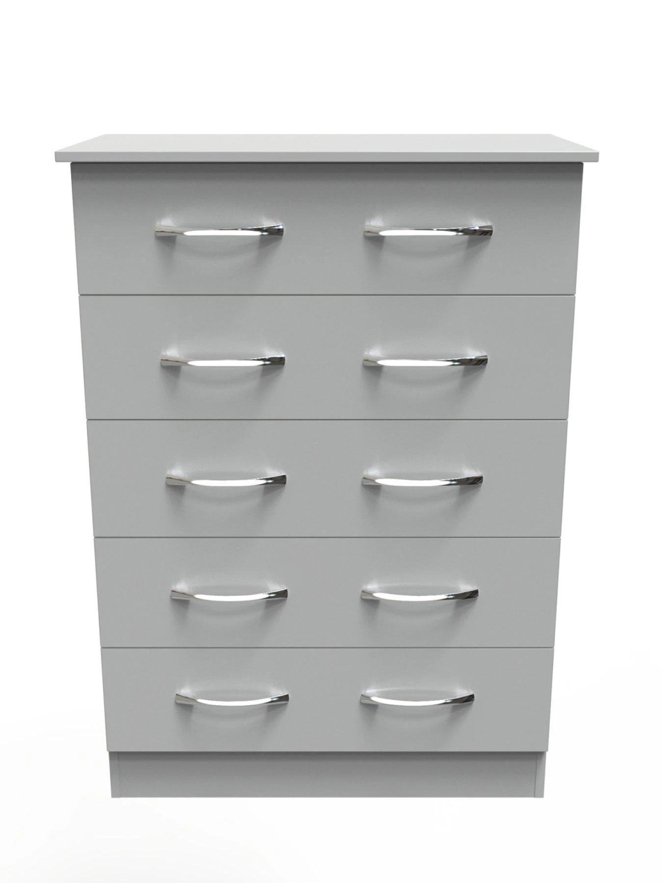 In a cool colour palette of painted white and grey, each option benefits from a scratch-resistant finish to keep your furniture looking new for longer. Fitted with sleek and shiny metal handles, the drawers feature linen-effect linings so they look as good on the inside as they do on the outside, and they glide effortlessly (and quietly) open on metal runners.