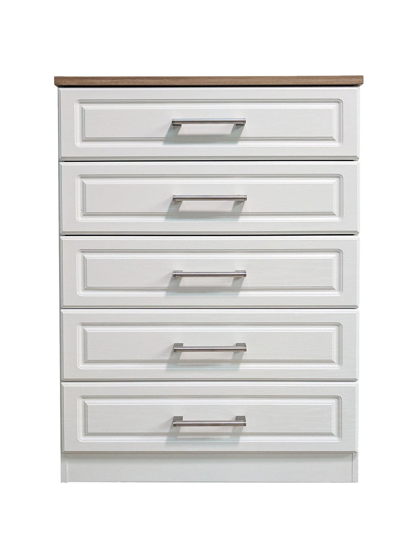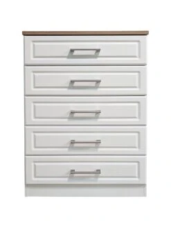 SWIFT Regent Ready Assembled Chest of 5 Drawers Chest in White Ash/Oak-Effect – Made in Britain – FSC® Certified