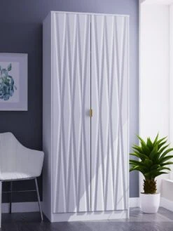 Key to its stunning style is the faceted 3D design to the doors. Scratch resistant and easy to wipe clean, it comes in a choice of soft matt white, black and white, mushroom, oak effect, white with grey fronts, white with baby pink fronts or new indigo blue with a white frame.