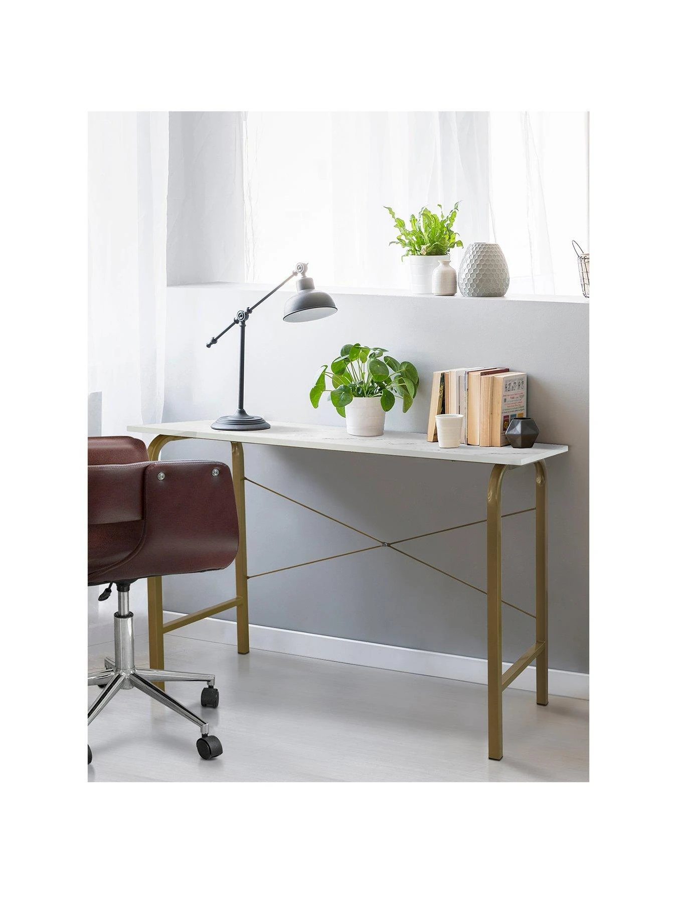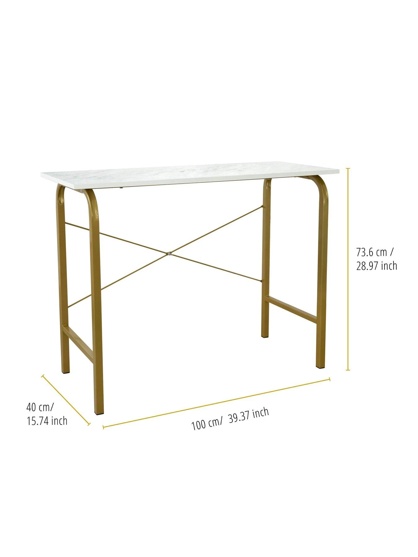 The Versanora Office Desk Features faux marble veneer table top and brass finish metal legs gives your workspace an elegant look. Versanora mixes the mid century style with simplistic modern style.