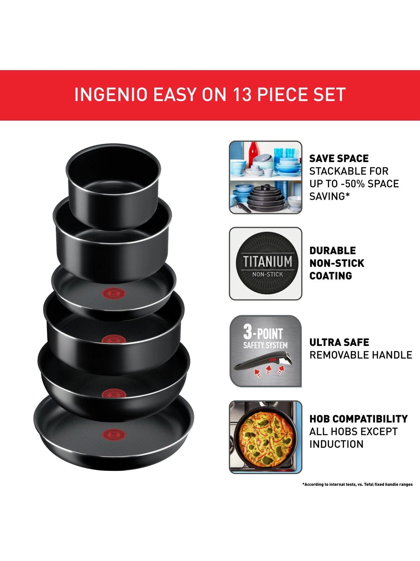 Tefal Ingenio Easy Cook 13pc Removable Handle, Stackable Pan Set L1549023