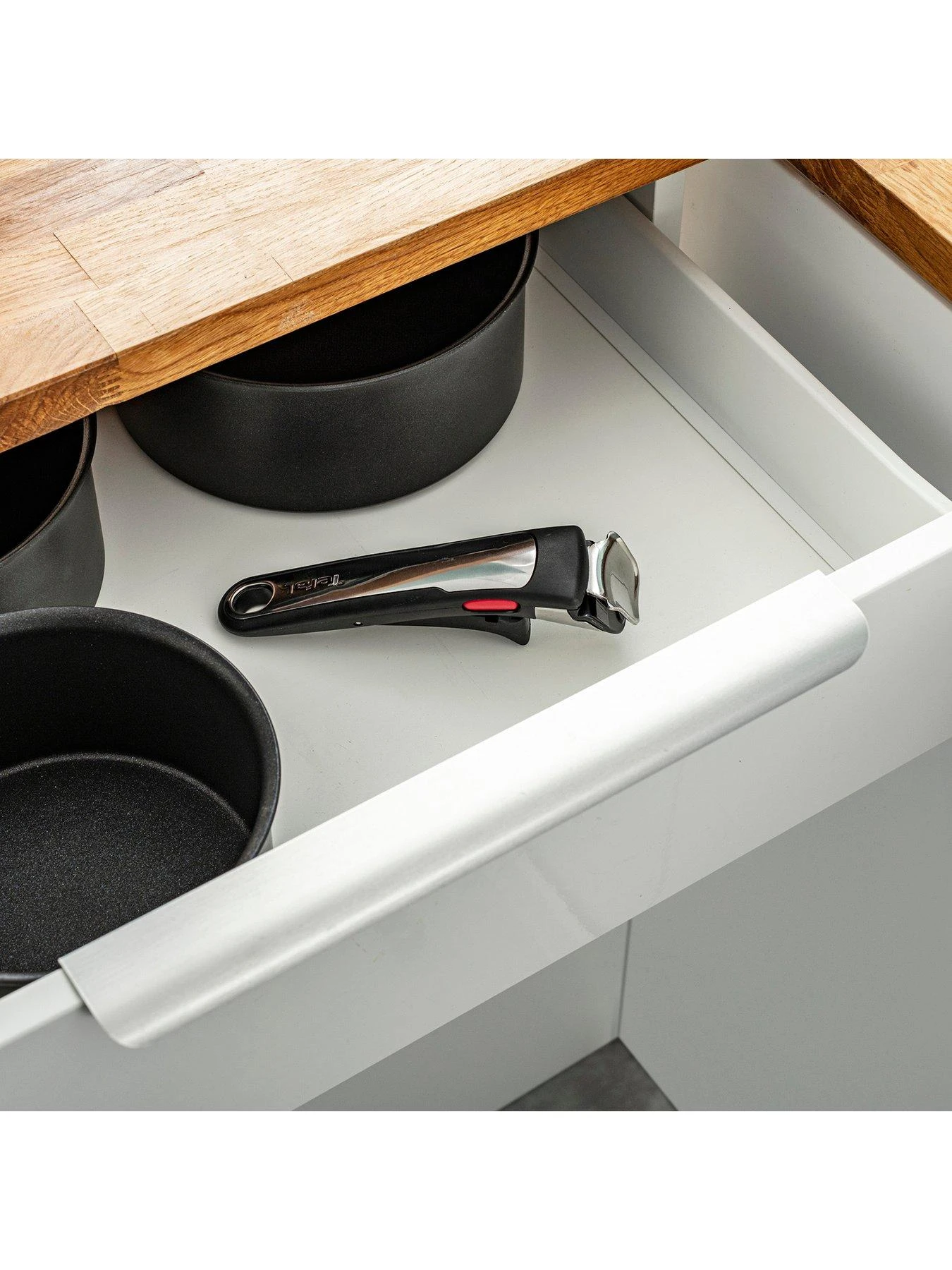 Simplify your cooking with Tefal Ingenio: ultra-resistant cookware with our iconic removable handle. Ingenio is a total game-changer in the kitchen. For starters, it’s simple to store. Minus the handle, these pans stack inside each other, giving you up to 50% more space in your cupboards*. 100% safe, the handle has a three-point system to keep it secure. It’s reinforced to carry up to 10kg** and guaranteed for 10 years***. Plus, it’s a bit of a magician in the kitchen, turning frying pans into oven dishes, and